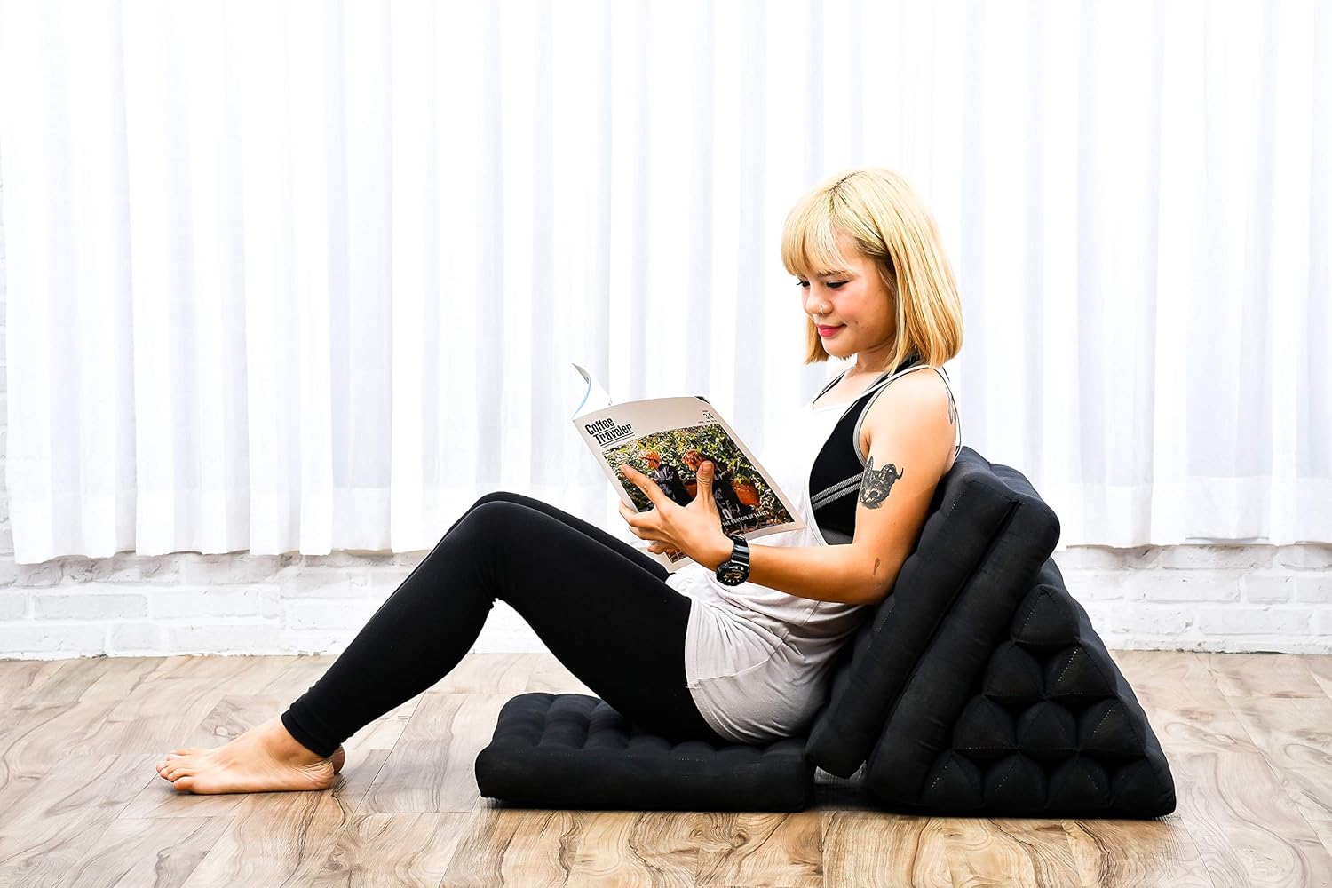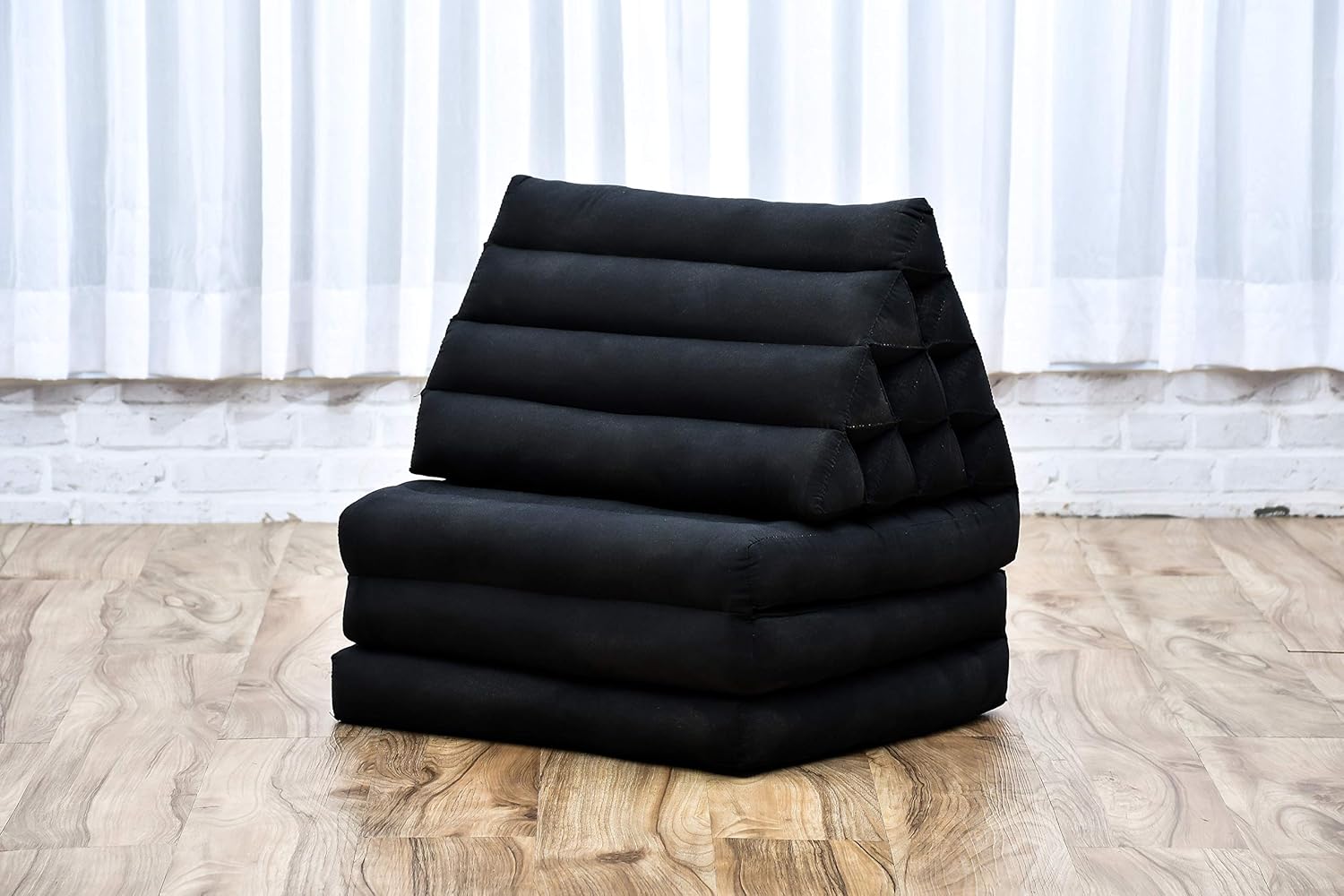 Leewadee 3-Fold Mat with Triangle Cushion – Comfortable TV Pillow, Foldable Mattress with Cushion Made of Eco-Friendly Kapok, 67 x 21 inches, Black