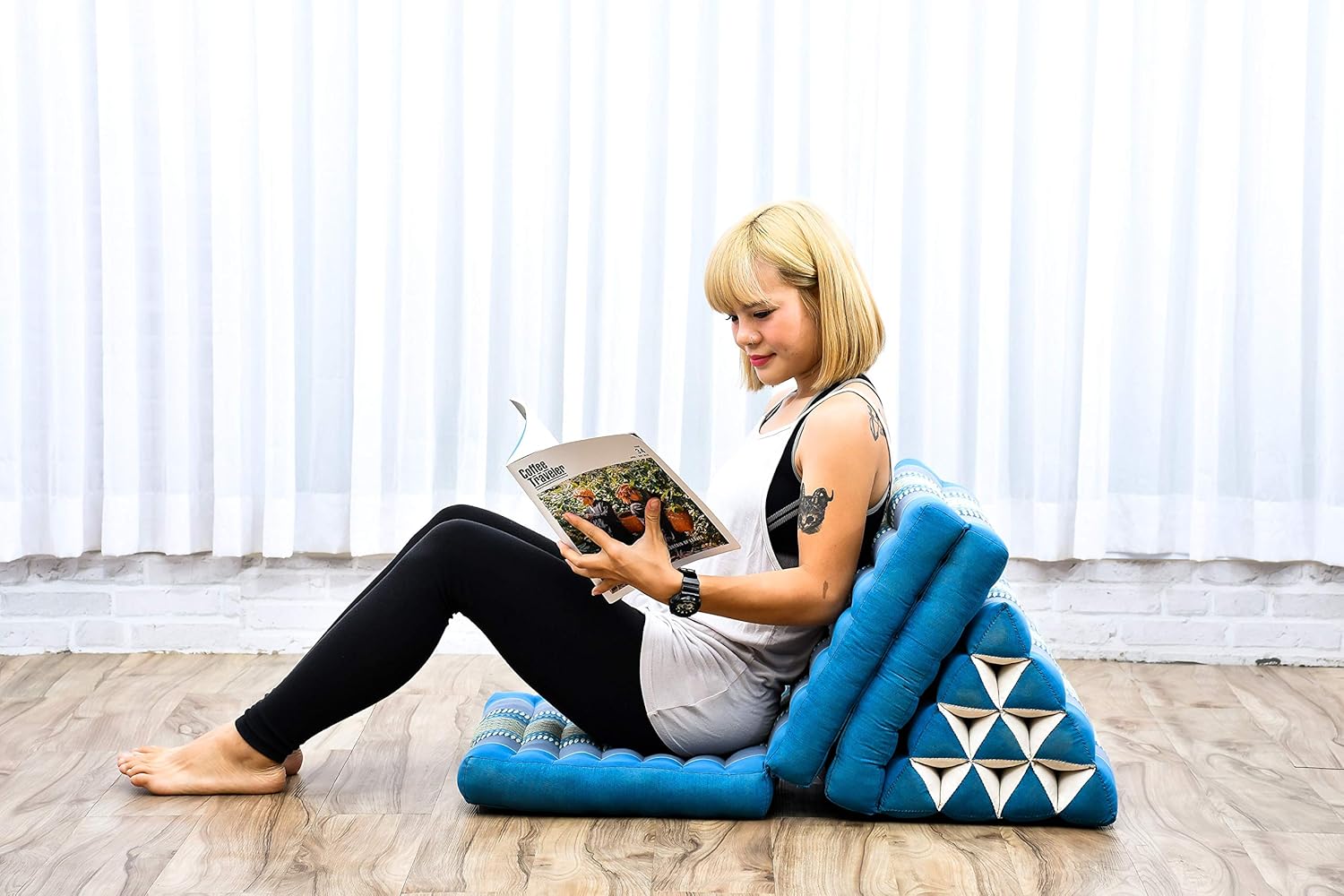 - Material: The Thai triangle pillow and the floor mat for adults is filled with natural kapok. The breathable fiber used for the floor cushions allow for a pleasant and comfortable seating position