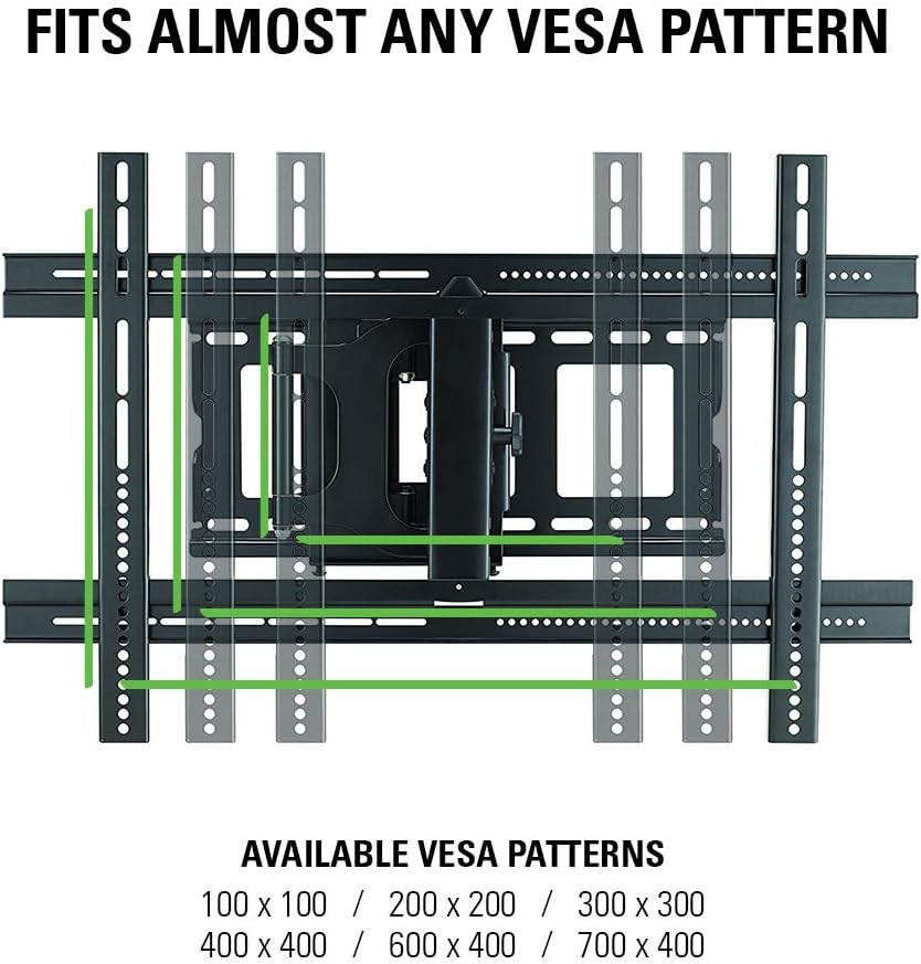 - Universal mounting design for TV's & Monitors 37"-80" - even curved TVs .Full-motion TV Mount - No Tools required to extend, tilt, swivel or roll the TV