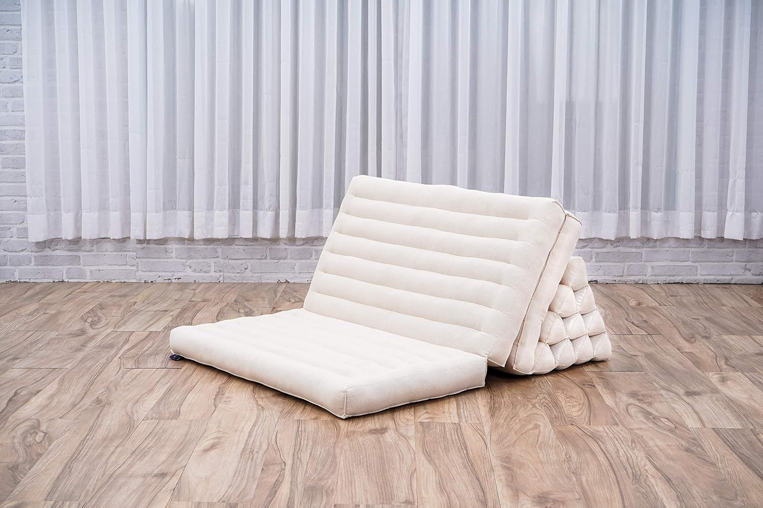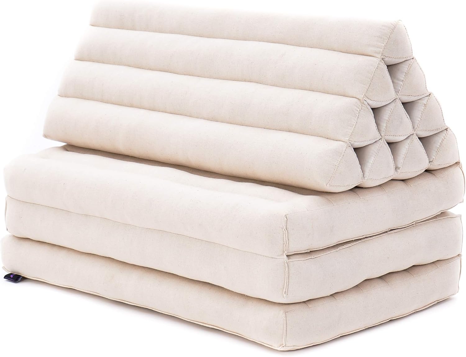 Leewadee 3-Fold Mat XXL with Triangle Cushion – Firm TV Pillow, Foldable Mattress with Cushion Made of Eco-Friendly Kapok, 67 x 31 inches, Ecru