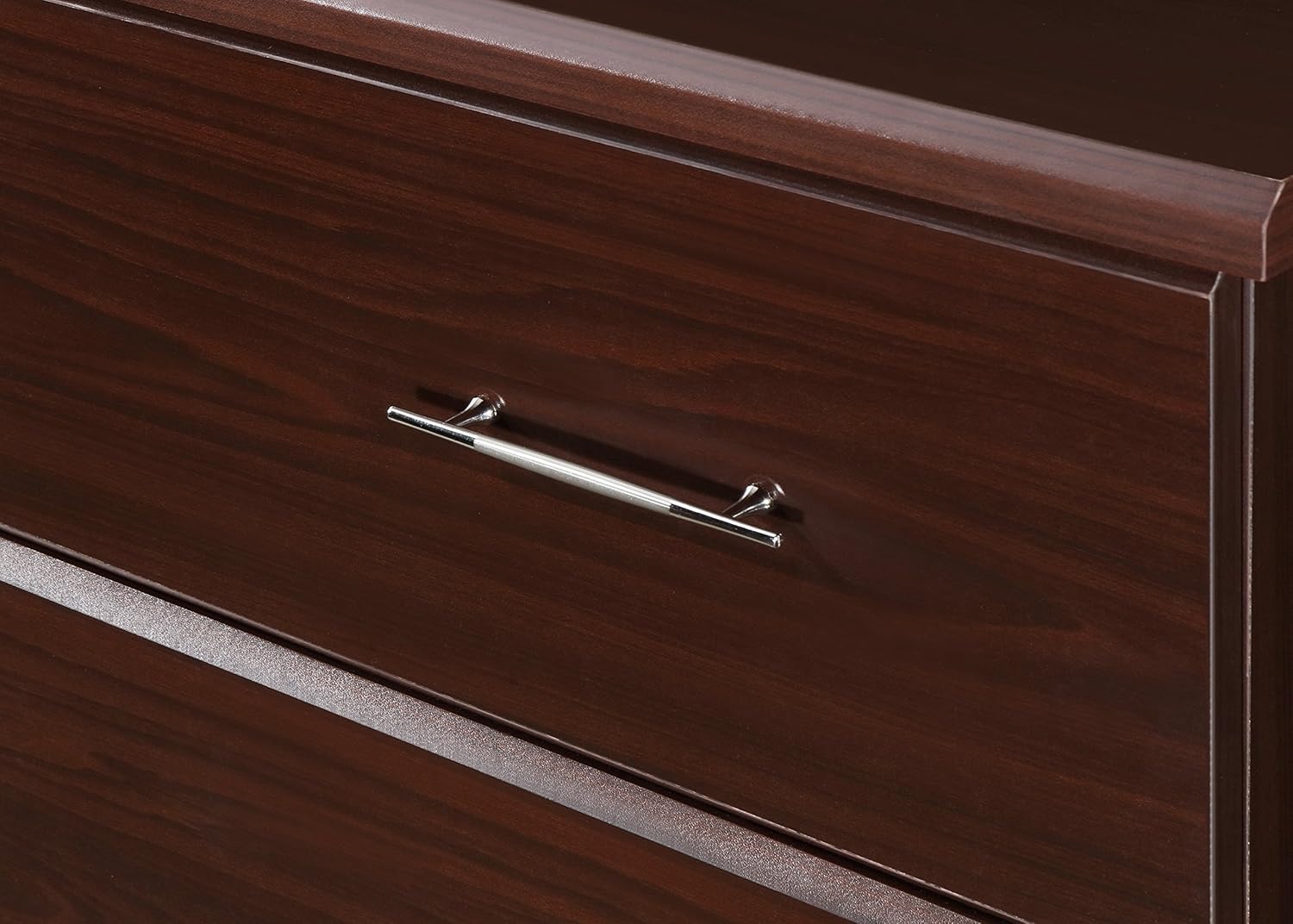 - INTERLOCKING DRAWER SYSTEM, TIP-OVER RESTRAINT KIT: For added safety, dresser includes innovative interlocking drawer system and tip-over restraint kit to reduce furniture tip-over hazards; Tested to meet or exceed all applicable category safety standards. Includes pre-installed drawer glides for quicker, easier assembly.