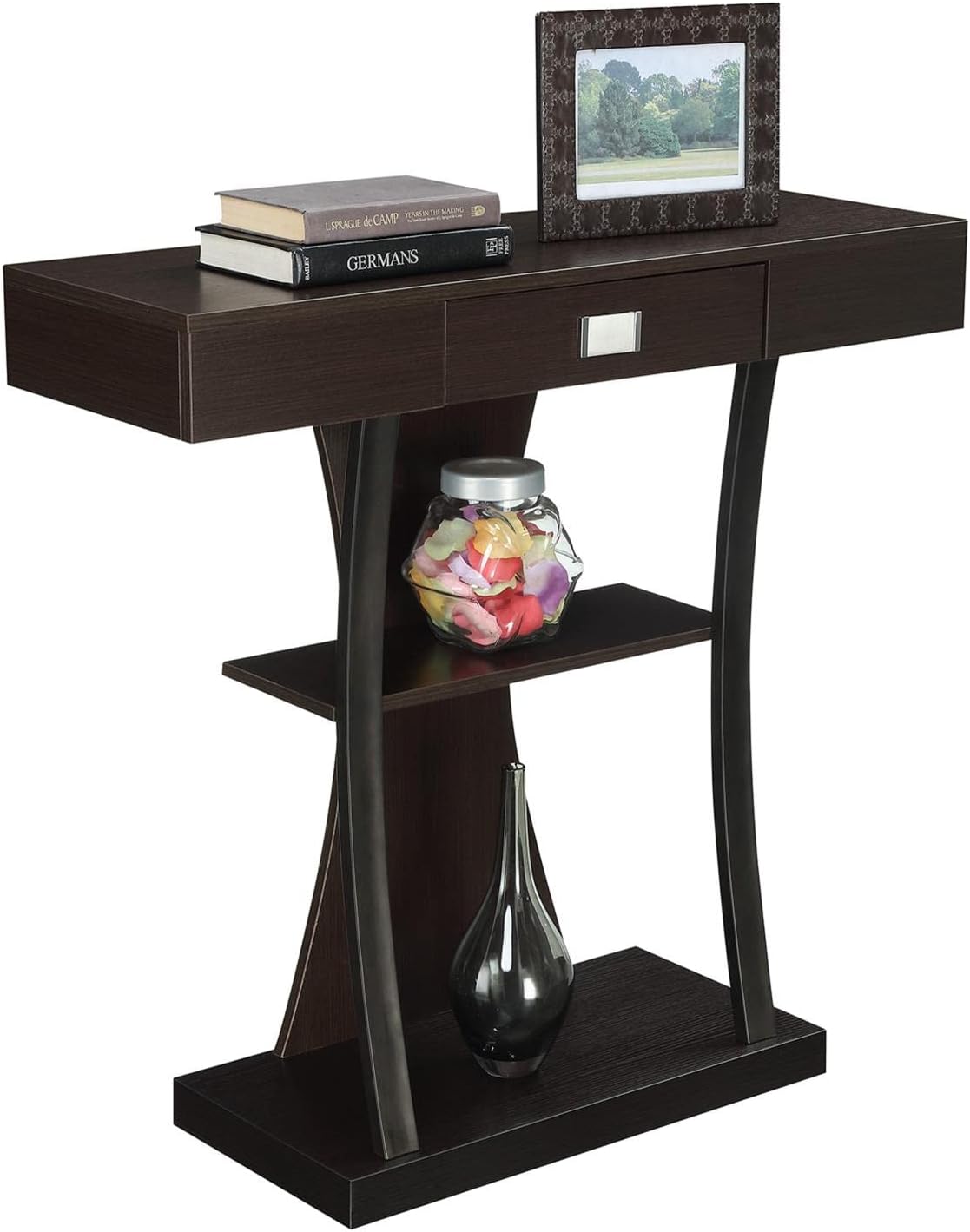 Convenience Concepts Newport Harri Console Table 36" - Modern Sofa Table with Storage Shelves, One Drawer Narrow Entryway Hall Table for Living Room, Espresso