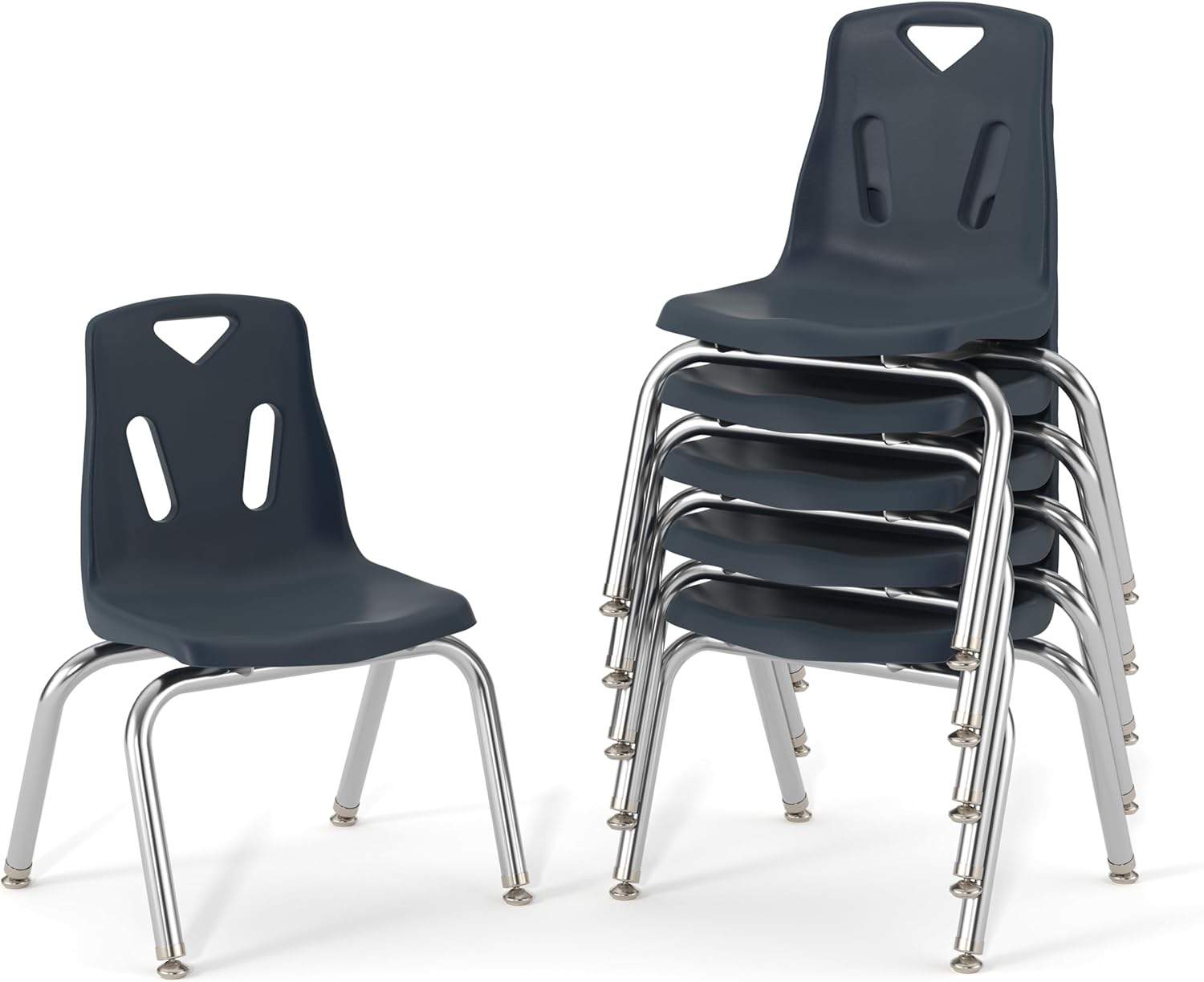 - SET OF 6 STACKING CHAIR CHROME PLATED LEGS - 14" Ht - NAVY - stackable chair great for kids to enjoy reading, socializing, and more. Easily stacks for convenient organization and freeing up space.