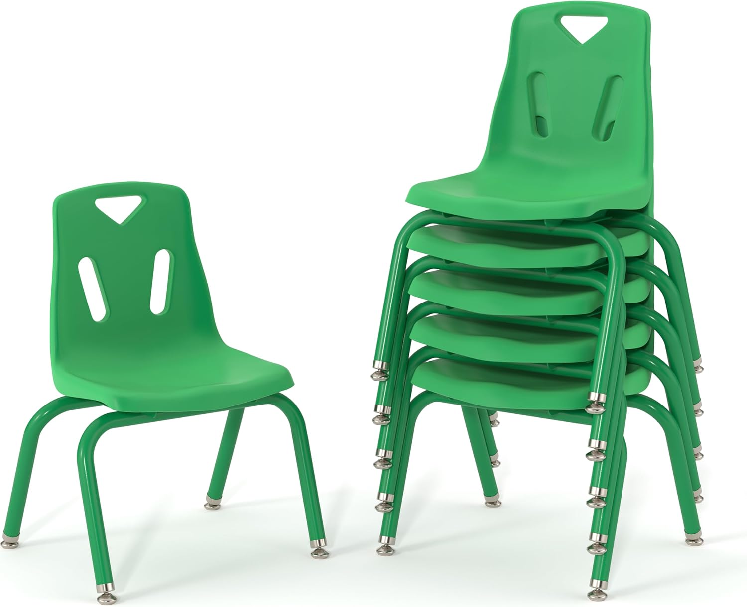 - SET OF 6 STACKING CHAIR POWDER COATED LEGS - 16" Ht - GREEN - stackable chair great for kids to enjoy reading, socializing, and more. Easily stacks for convenient organization and freeing up space.