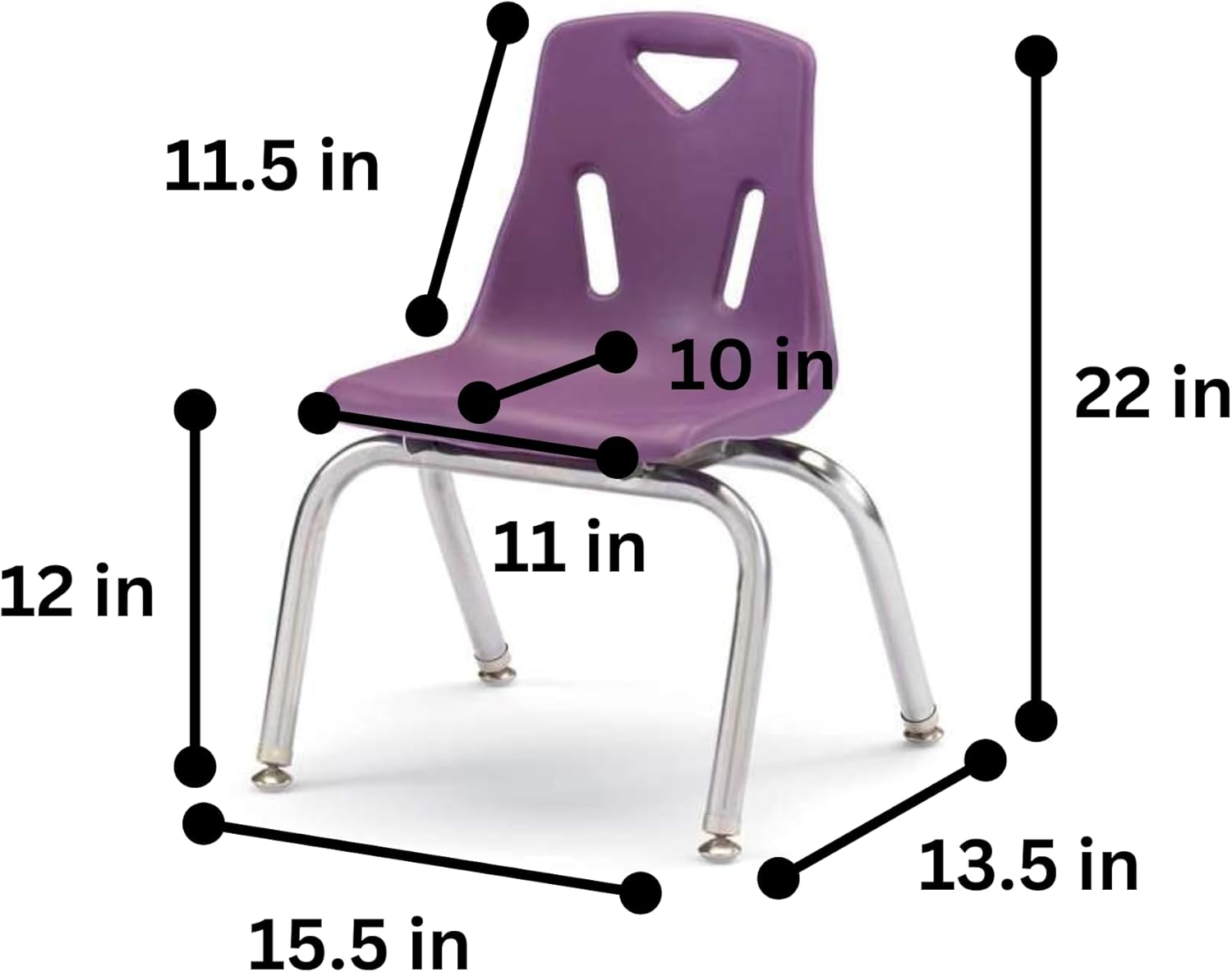 - SET OF 6 STACKING CHAIR CHROME PLATED LEGS - 12" Ht - PURPLE - stackable chair great for kids to enjoy reading, socializing, and more. Easily stacks for convenient organization and freeing up space.