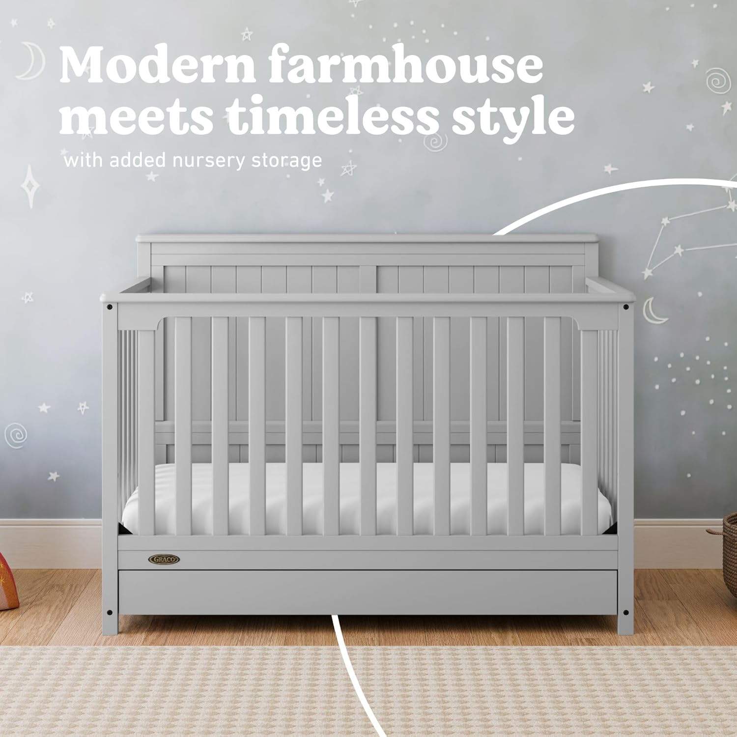 Graco Hadley 5-in-1 Convertible Crib with Drawer (Pebble Gray) – GREENGUARD Gold Certified, Crib with Drawer Combo, Full-Size Nursery Storage Drawer, Converts to Toddler Bed, Daybed