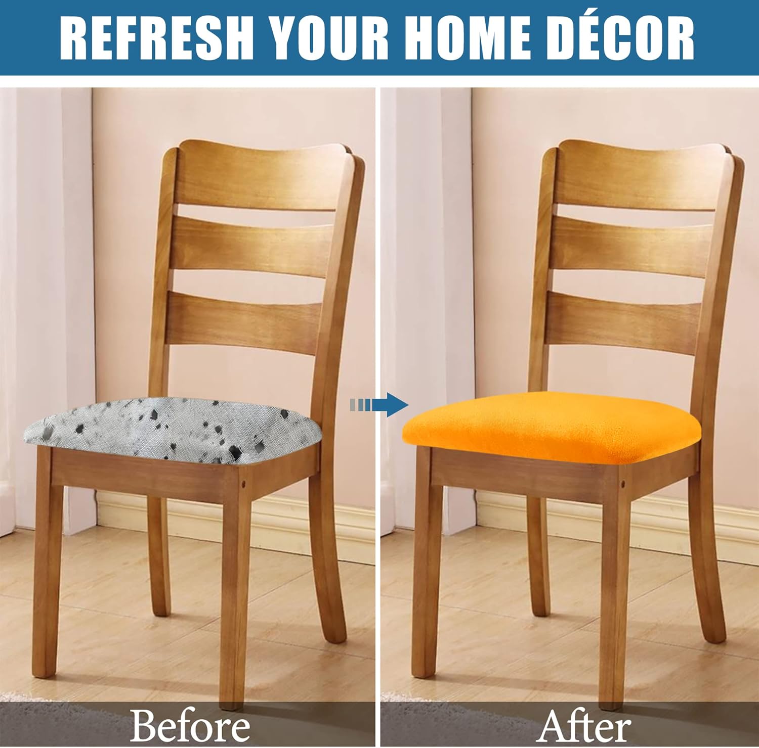 - [Protect & Decor Your Chairs] Velvet seat covers for chairs give your old chairs new look and protect your chair furniture from dust, stain, daily wears and scratch. This is an ideal choice to decorate and restyle your chair for families with children and pets