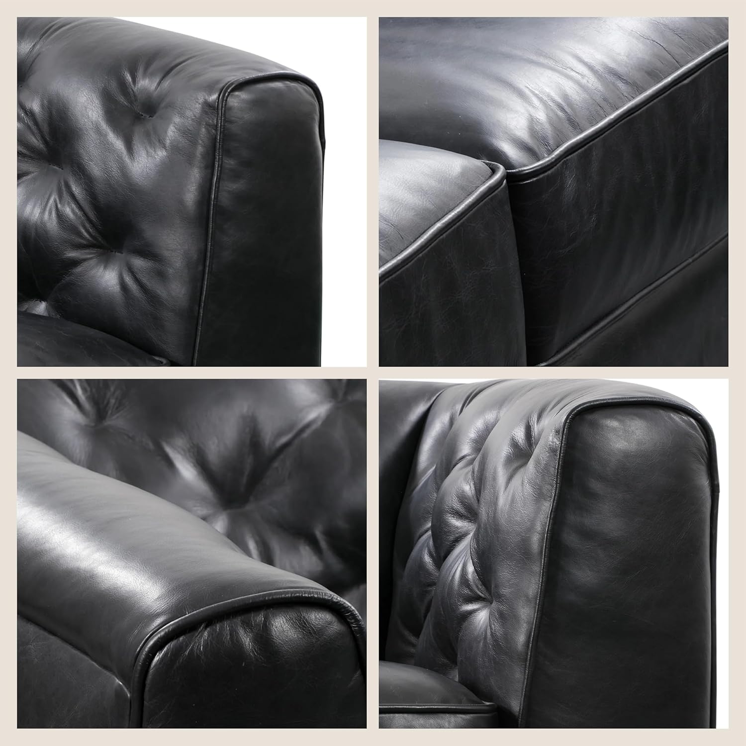 - Quality First Because Quality Lasts: Our full-grain pure-aniline Italian leather sofa is designed with your comfort in mind, featuring a feather-down topper on seating surfaces, webbing support, and non-reversible cushions. Its solid wood legs with a walnut finish complement the onyx black leather, making it an ideal office sofa or living room sofa.