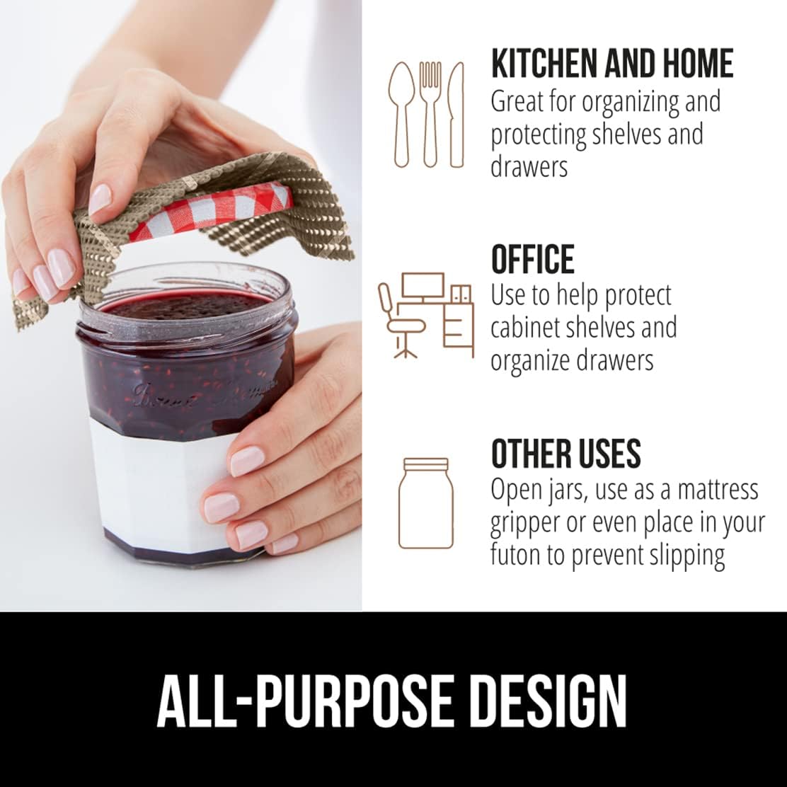 - KITCHEN, OFFICE, OR BATHROOM: liner can be used in several areas of your home; use it in your kitchen, pantry, work station, office room, laundry room, bathroom vanity shelves and more; perfect for organizing your space and home; use any excess liner pieces for opening jars and can also work great for a slipping futon, couch cushions, or mattresses