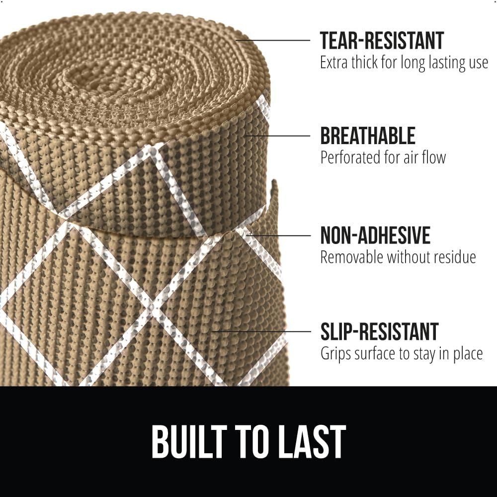 GORILLA GRIP powerGRIP Drawer Shelf and Cabinet Liner, Thick Strong Hold, Non-Adhesive Liners Protect Kitchen Cabinets and Cupboard, Bathroom Drawers, Easy Install, Breathable Mat, 12" x30', Beige