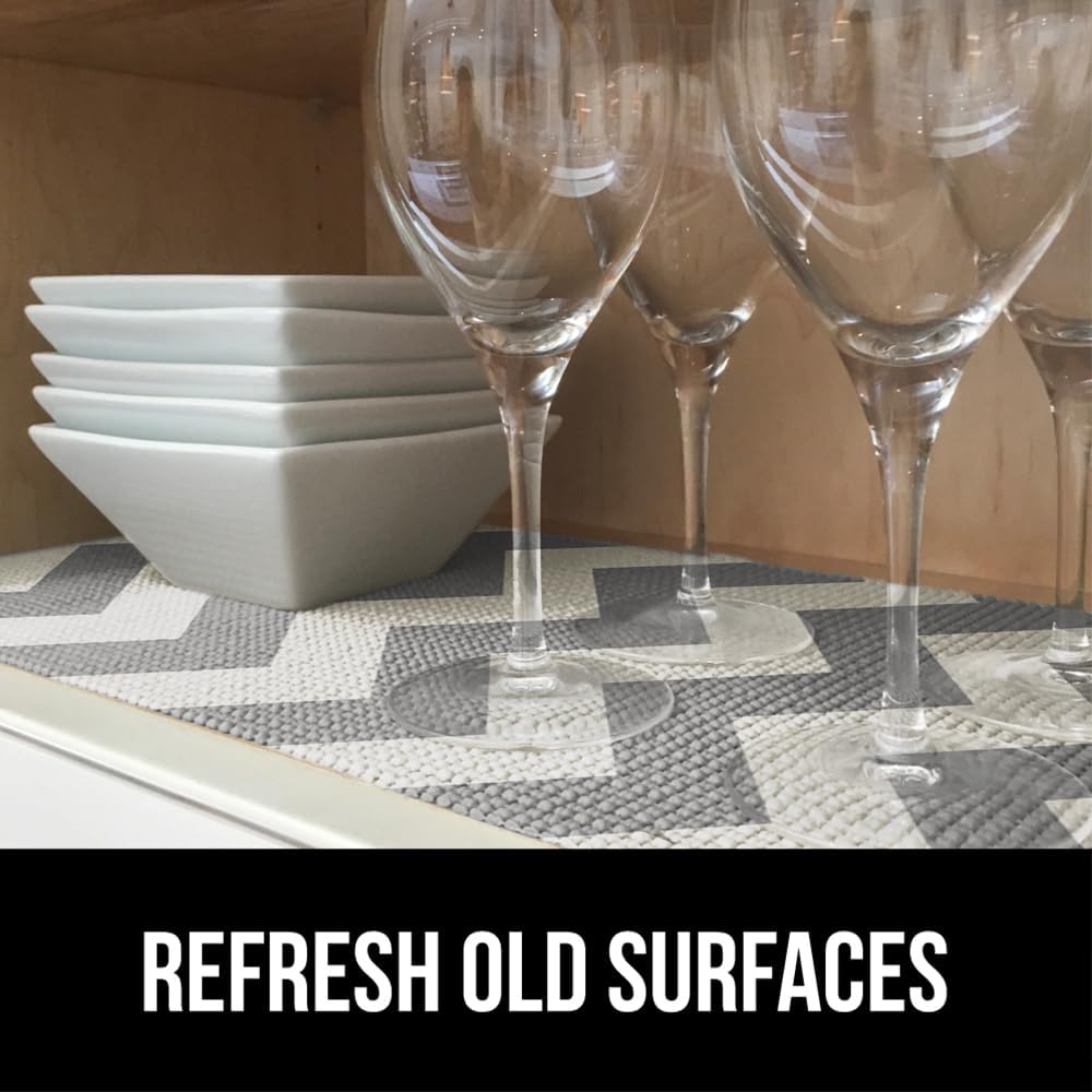 GORILLA GRIP powerGRIP Drawer Shelf and Cabinet Liner, Thick Strong Hold, Non-Adhesive Liners Protect Kitchen Cabinets and Cupboard, Bathroom Drawers, Easy Install, Breathable Mat, 12" x30', Chevron