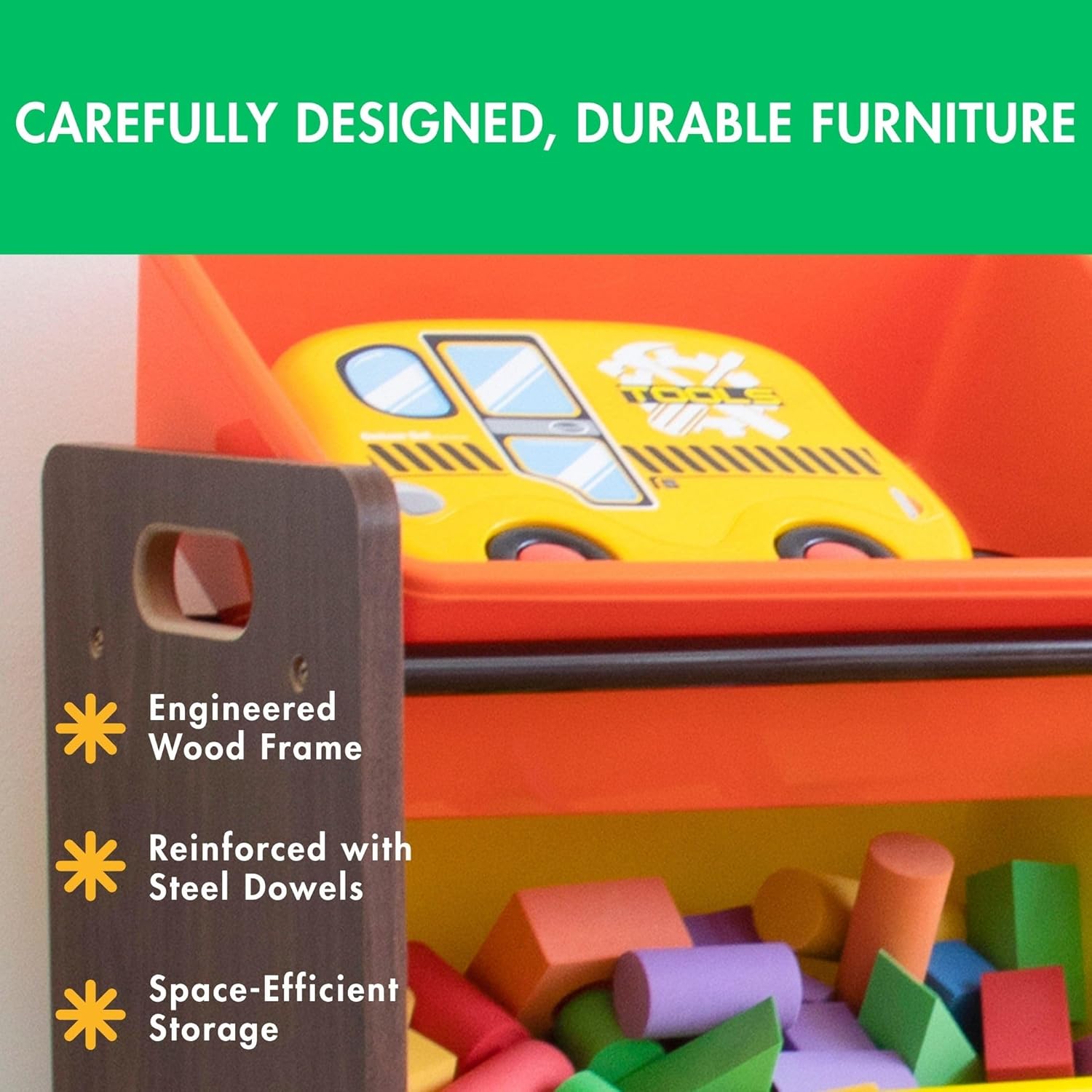 Humble Crew Extra-Large Toy Organizer with 20 Plastic Bins – Dark Walnut/Neon Storage Rack with 4-Tier Shelves, Anti-Tip Safety, for Kids’ Rooms, Playrooms, Nurseries & Classrooms