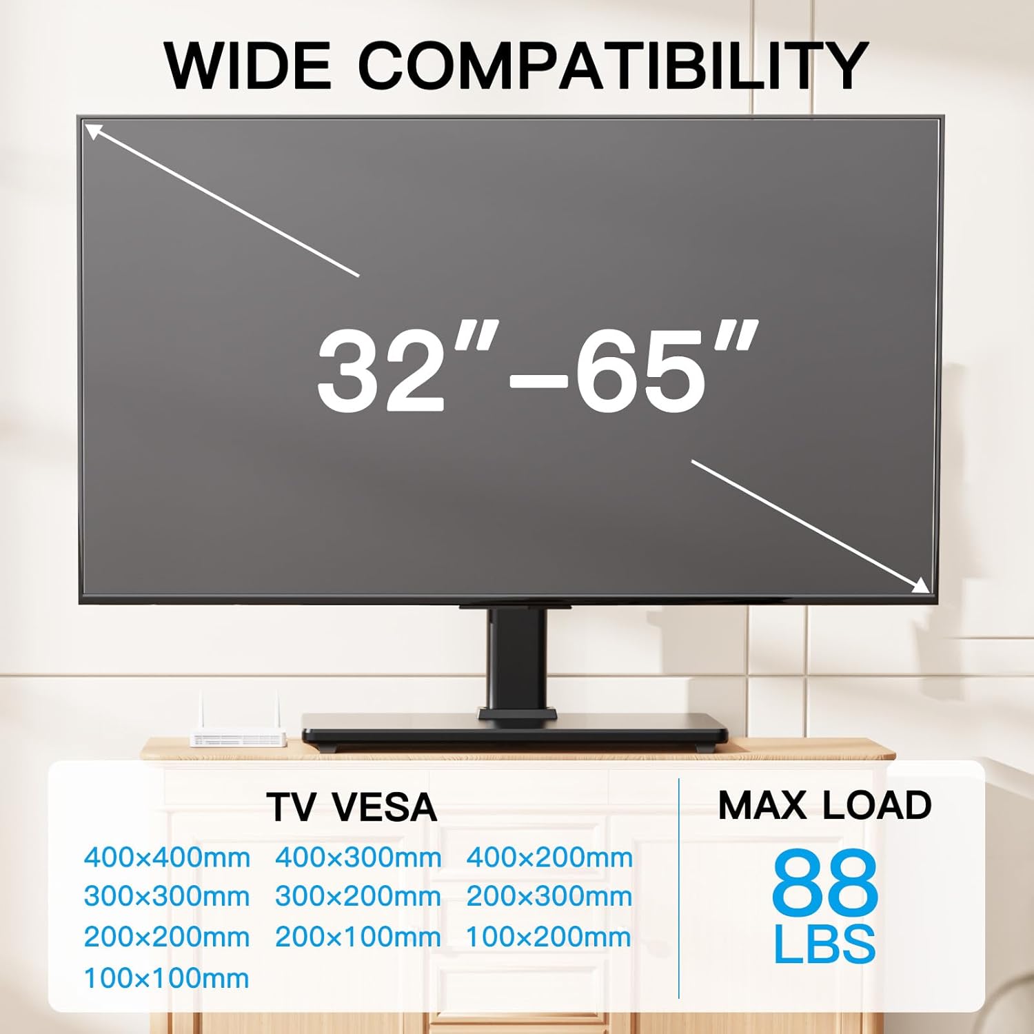 PERLESMITH Universal Swivel TV Stand-Table Top TV Stand for 32-65 inch TV-Height Adjustable TV Base with Heavy-Duty Tempered Glass Base, VESA 400x400mm up to 88lbs, PSTVS17