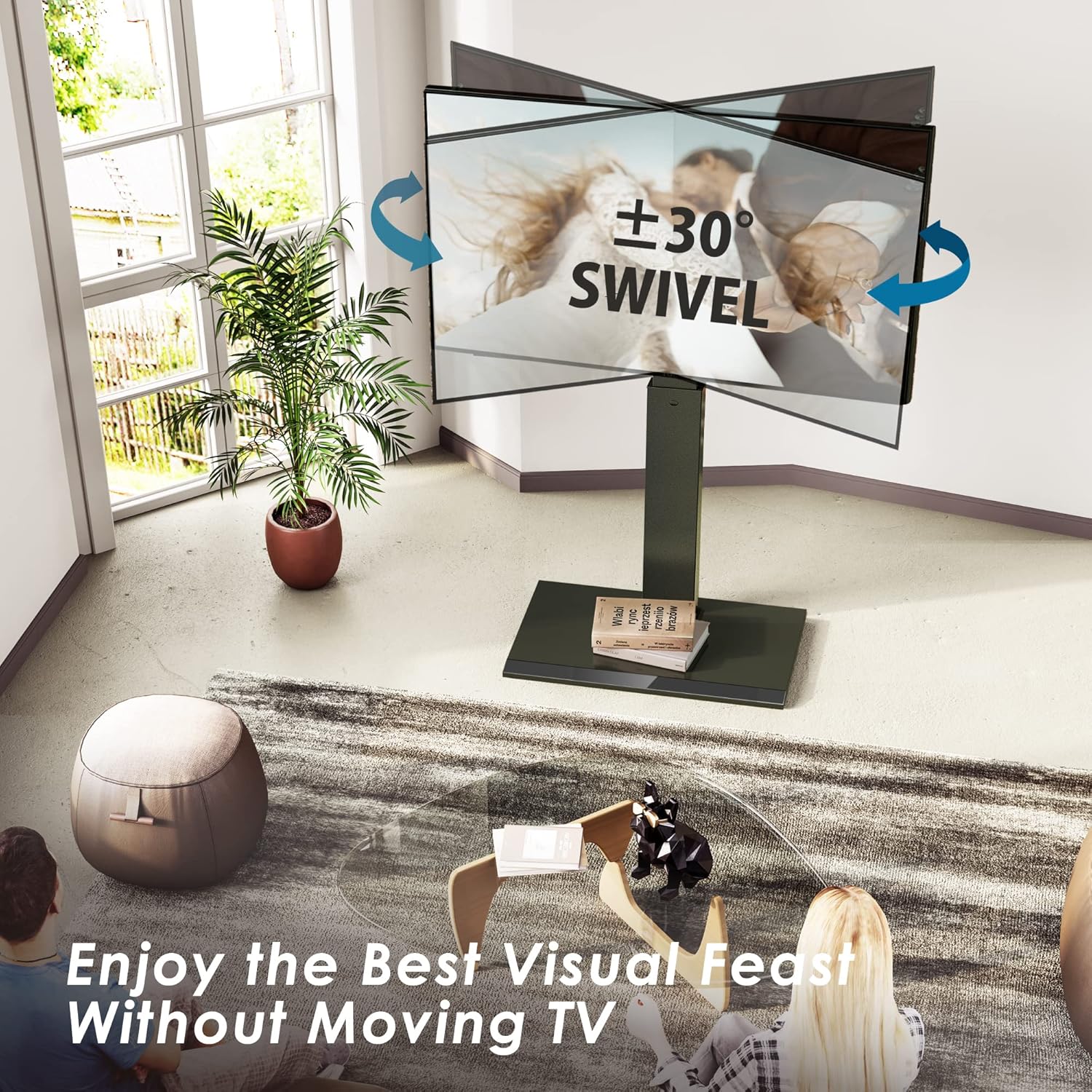 FITUEYES Iron Base Universal Floor TV Stand with Swivel Mount for 32-65 Inch LED LCD OLED Plasma Flat Panel or Curved Screen TVs Height Adjustable with Wire Management (Black)