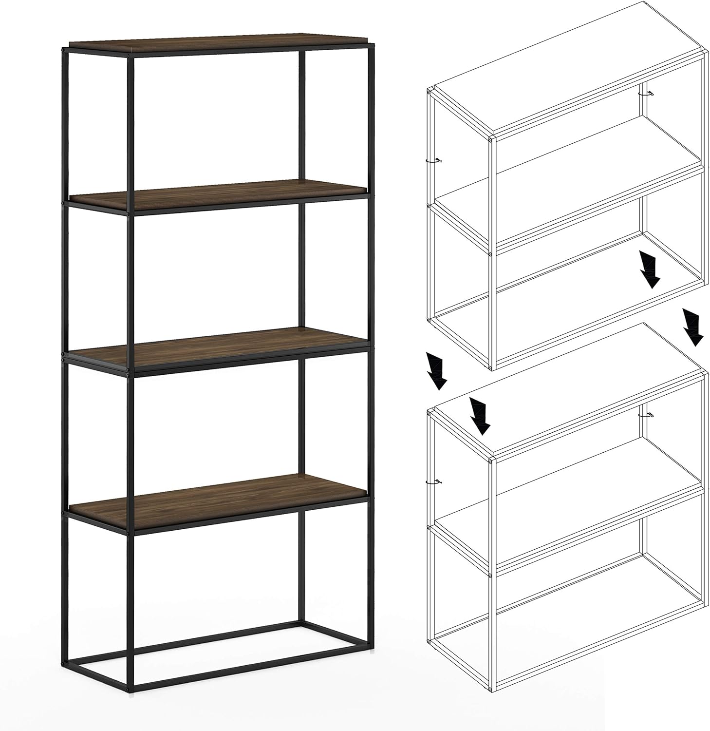 Furinno Moretti Modern Wide Stackable Metal Shelf, Columbia Walnut