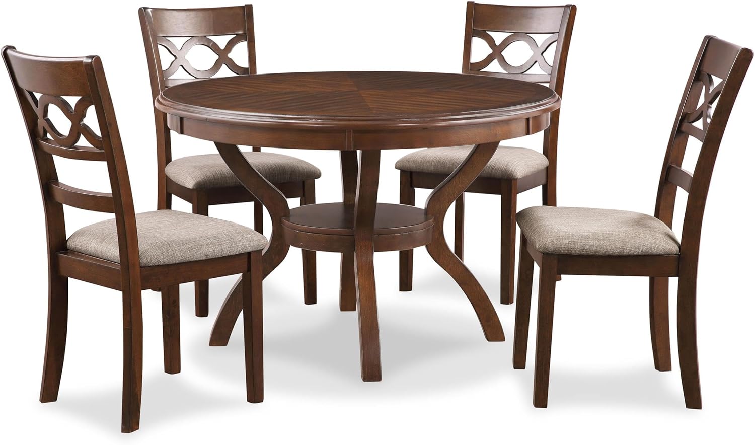 New Classic Furniture Cori 5-Piece Round Dining Set with 1 Table and 4 Chairs, Cherry Brown