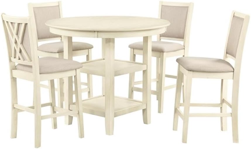 New Classic Furniture Amy 5-Piece Counter Dining Table Set, Beige and Brown