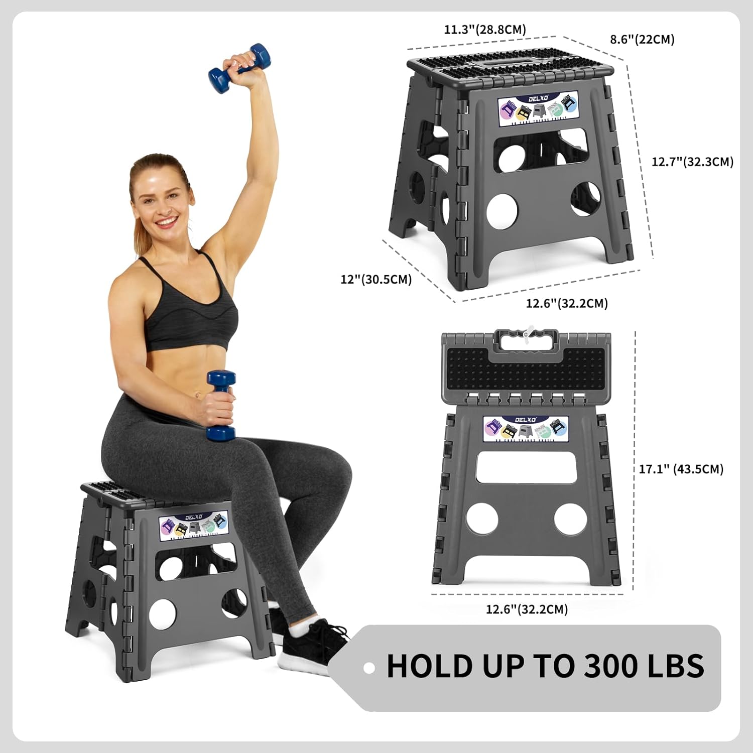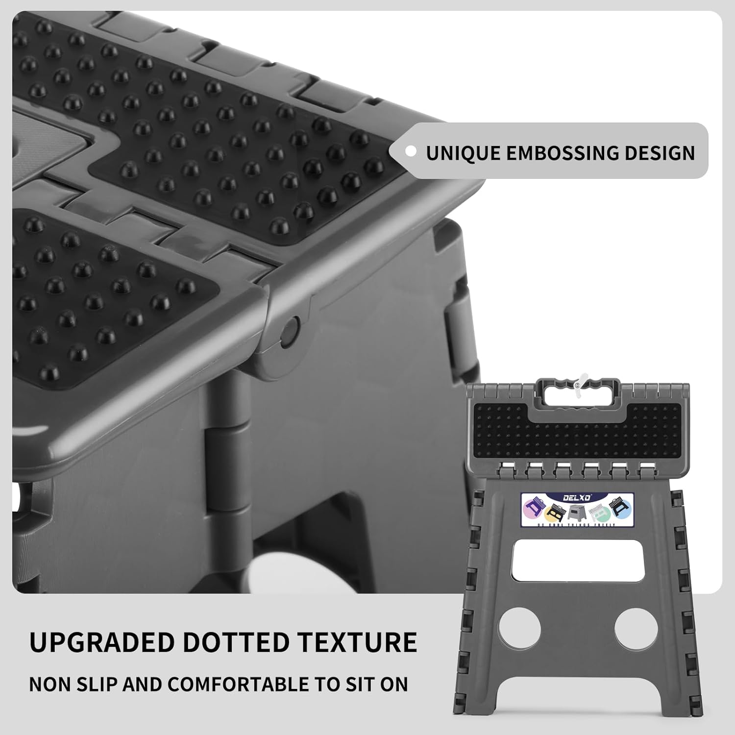 - Safe Upgrade Step Stool : Delxo have designed a safety stop gap feature that allows the foldable stool to prevent being squashed, great for adults. Four round corner super safe protect your body from clashing. All of this design is put your safe first