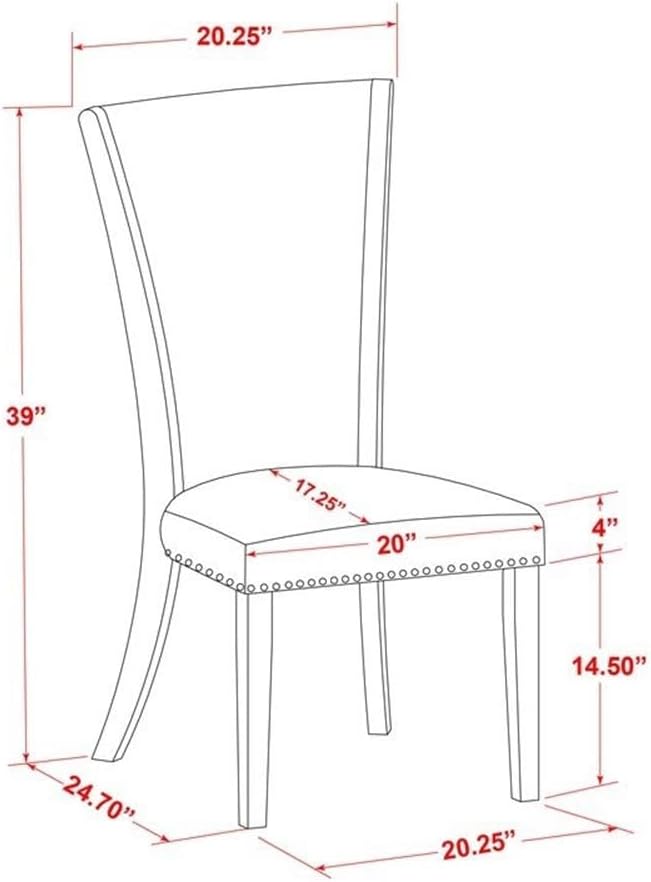 - PRODUCT DIMENSIONS: The specifications of beautiful dining room table: Length: 72; Width: 40; Height: 30 Dimensions of beautiful modern chairs: Length: 24.70; Width: 20.25; Height: 39.