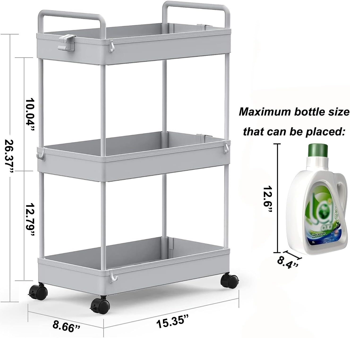 - 【Smooth Mobility & Secure Locking】: Equipped with 4 360° swivel wheels (2 lockable) for effortless movement and stability. Two side handles make it easy to push and pull, particularly in tight spaces like kitchens or bathrooms