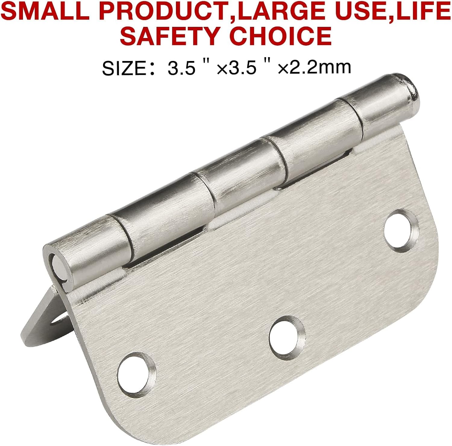 - Nickel door hinges 3.5" rounded corners with 6 holes for front door, cabinet, wooden box. Plain bearing hinges is including 600 free screws for quick and easy installation. It can be rotated 270 degrees.