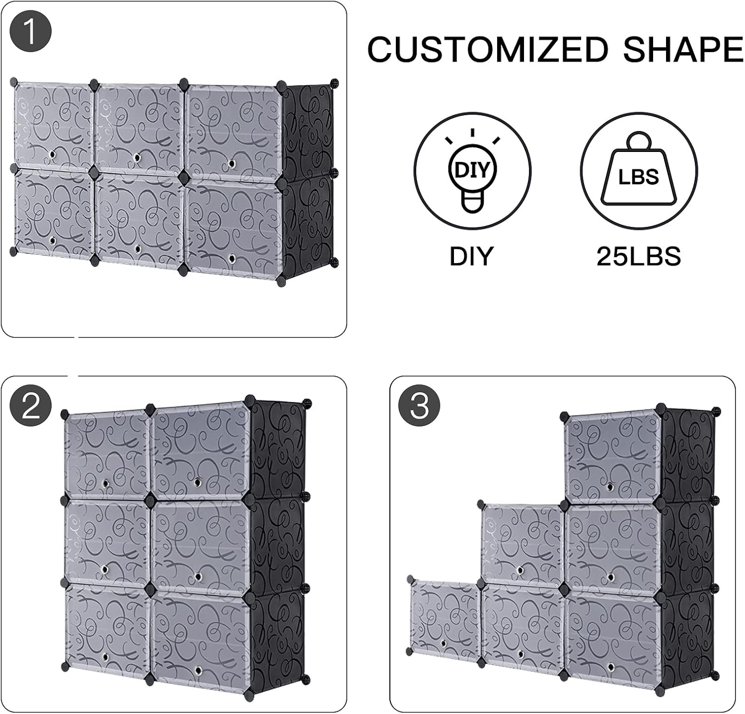 - 【EASY TO ASSEMBLE】Free DIY, Easy assemble and disassemble in a brief time with detailed installation manual provided. Multi-angled plastic ABS connectors are included to assemble your modular cabinet; it is recommended to use a pair of gloves to protect the hands from getting scratched or harmed while attaching the panels with the connectors.