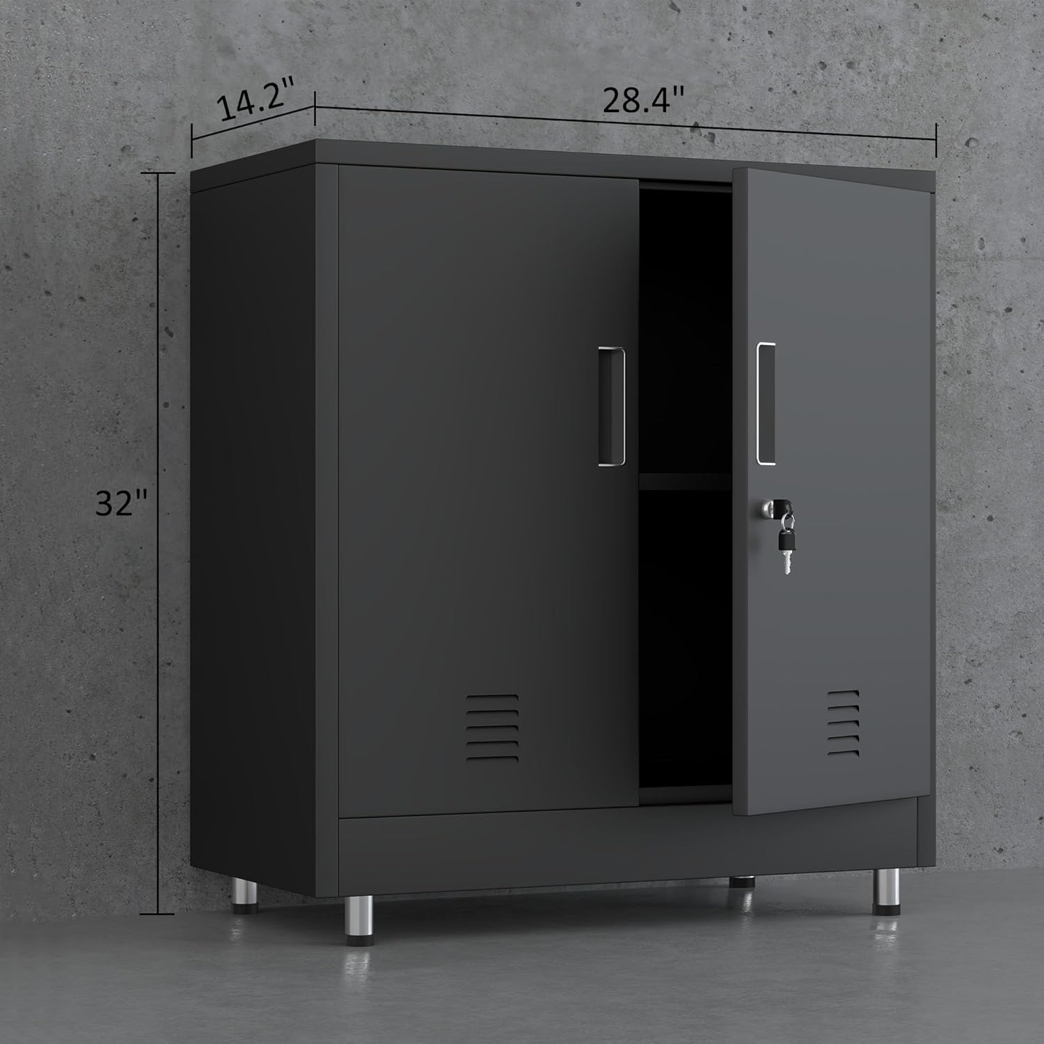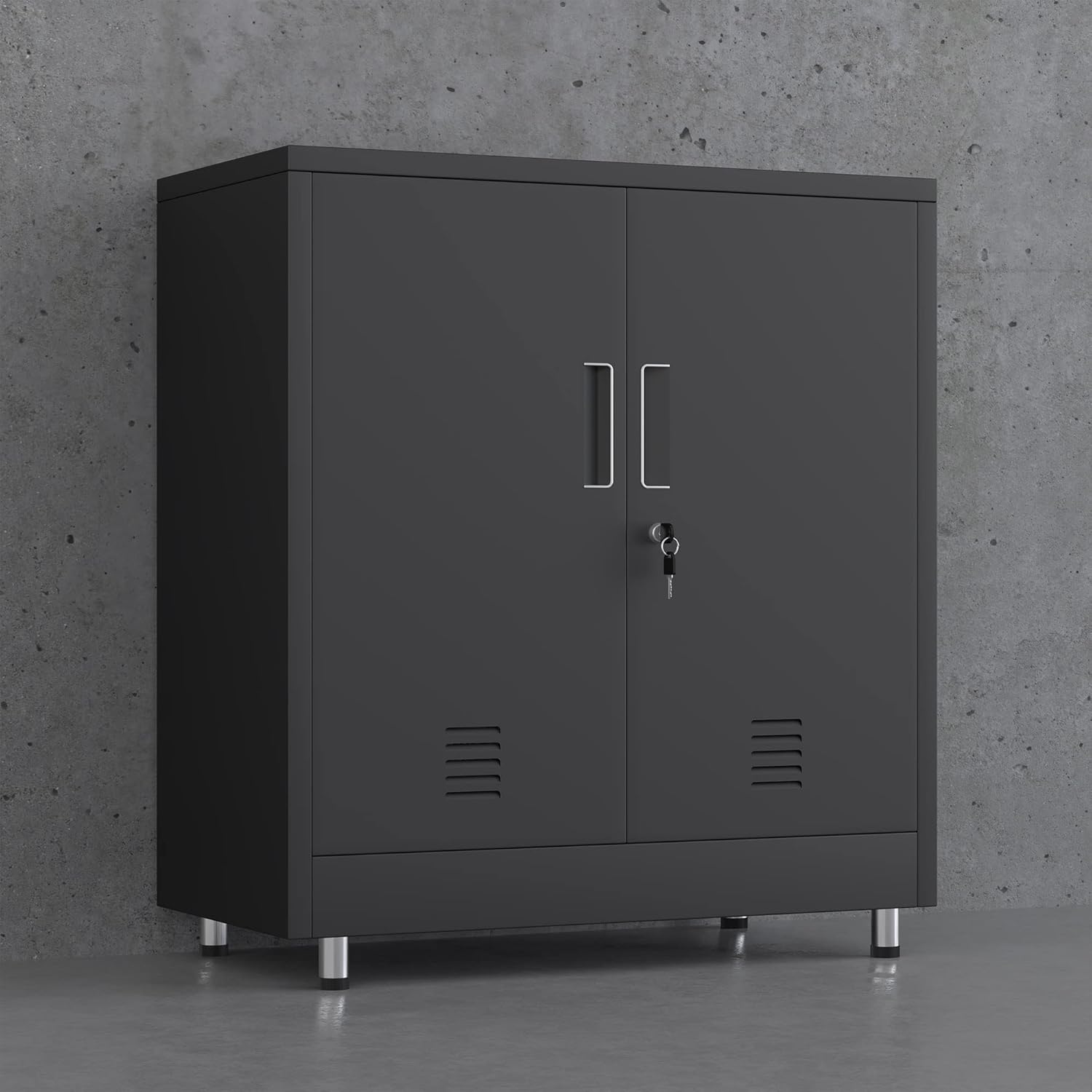 - LOCKABLE DOORS - This metal storage cabinet features locking doors with 4 keys, it is also fitted with door stopper to keep the doors stay shut when it is not locked