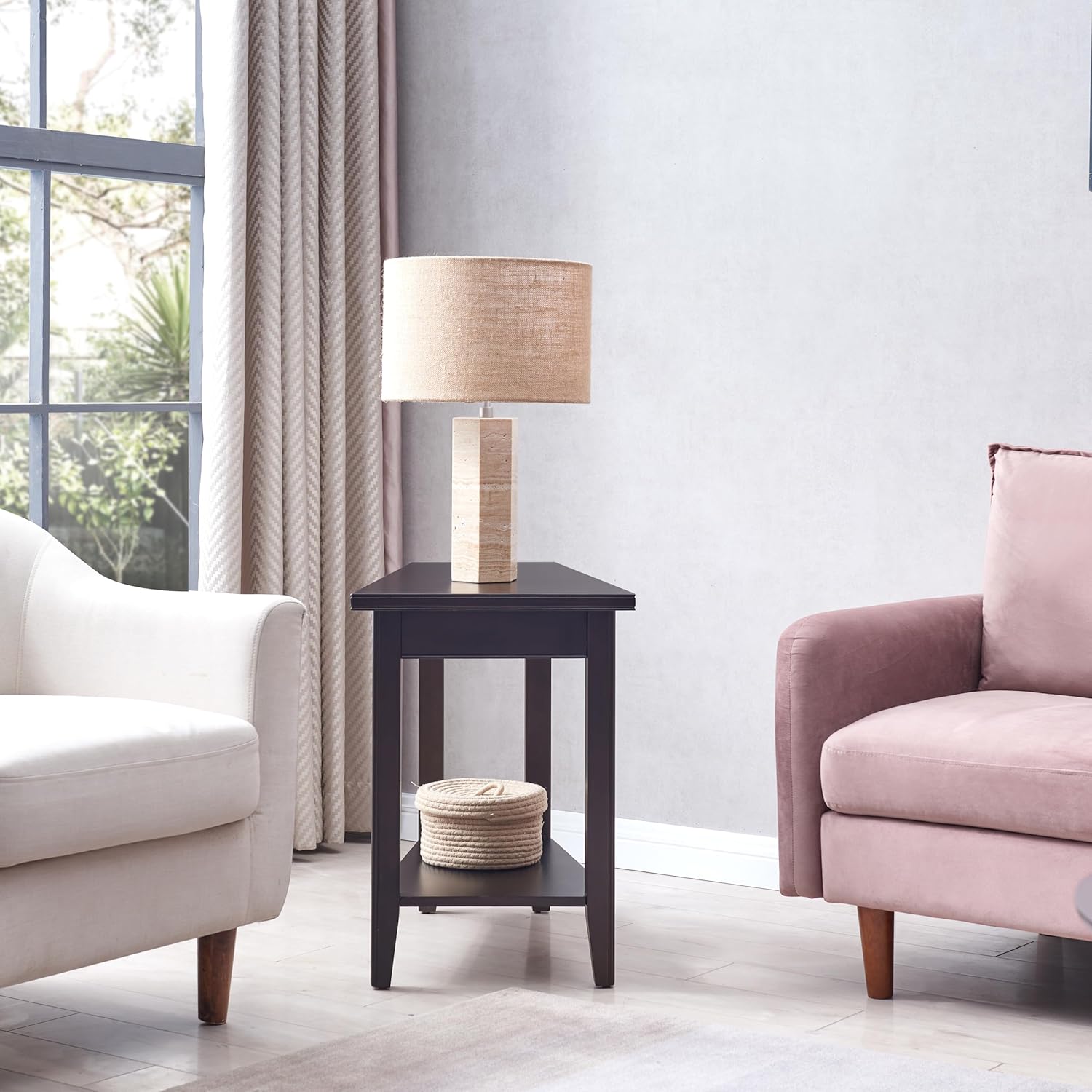 Leick Home Laurent End Table, Solid Wood, Narrow Wedge Shape, Bottom Display Shelf, Easy-Assembly, For Living Room/Bedroom, Black, 24.0 in. L x 17.0 in. W x 24.0 in. H, 10502-BK