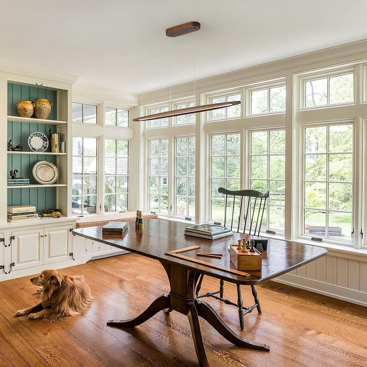 39" Wood Linear Pendant Light LED Dimmable Hanging Light Dinning Room Light Fixture Island Lights 24w for Dining Room Kitchen Island Bar Walnut Color