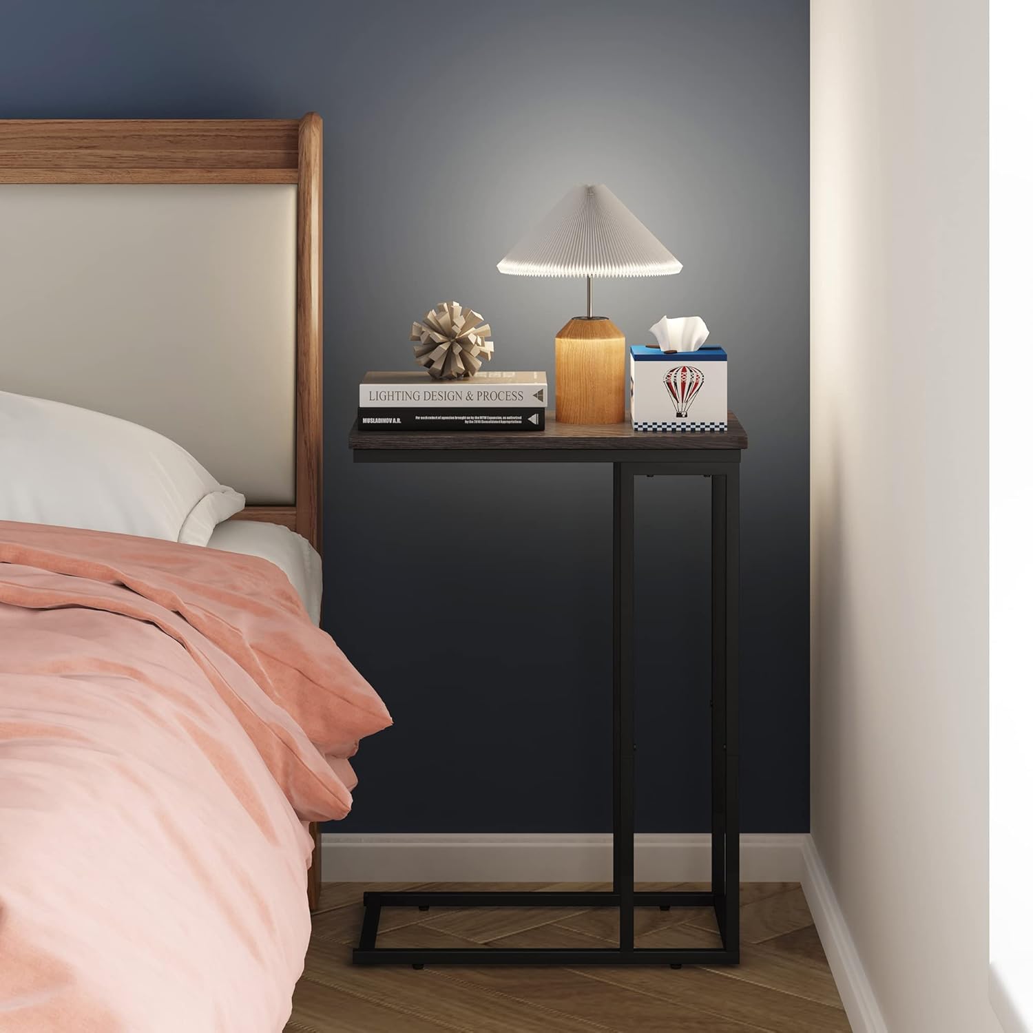- 【C Shaped Design】C table side table is easy to slide your feet under the couch, sofa or bed, making snacks, coffee, remote control,mobile phone,laptop and books easier to get