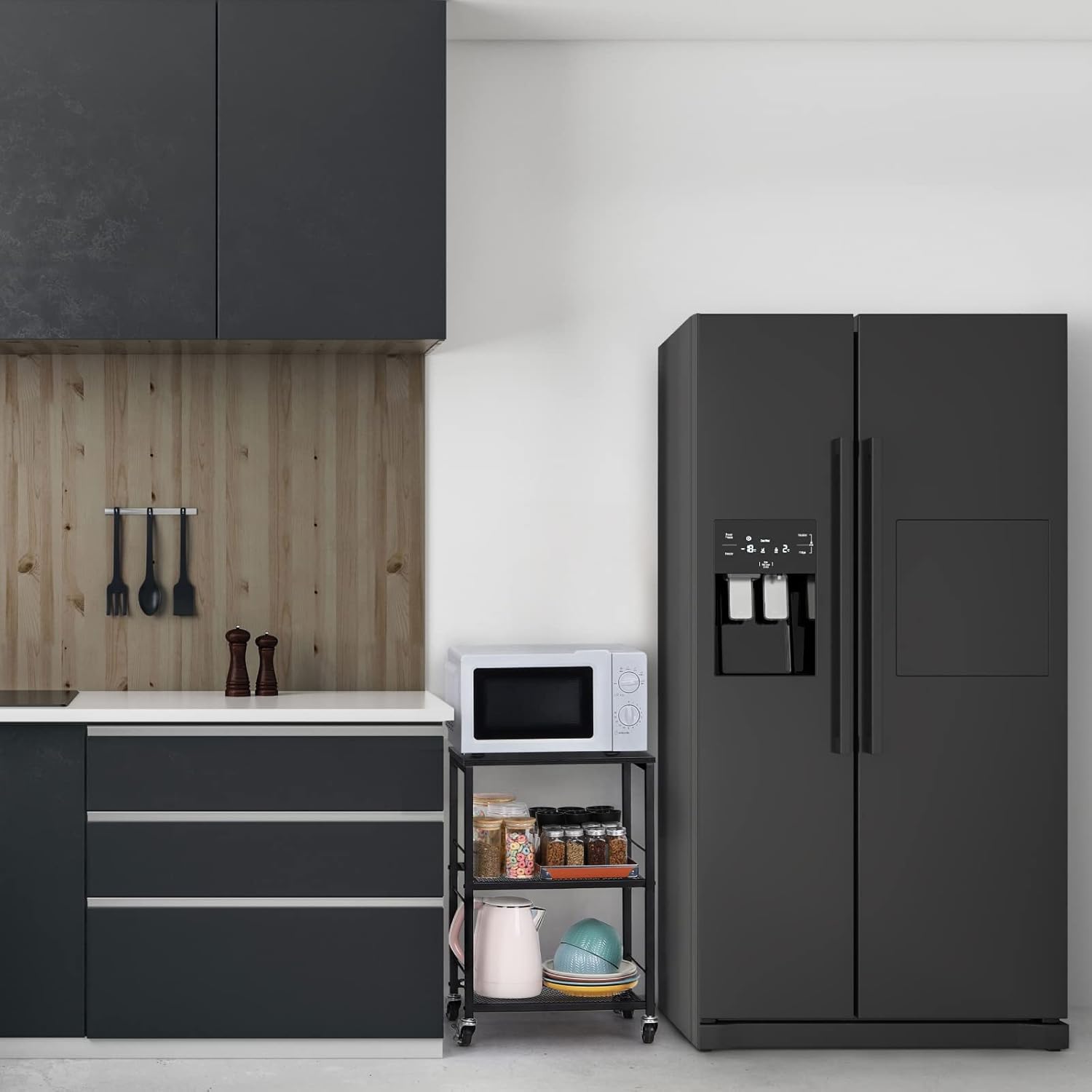 LIANTRAL 3 Tier Rolling Cart, Black Kitchen Carts on Wheels with Storage, Multifunctional Utility Cart for Kitchen Bathroom Living Room Bar Office