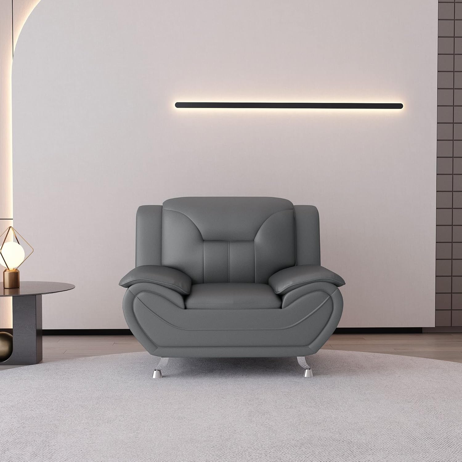 - Bring Stately Elegance to your Living Space With the Michael Segura Upholstered Living Room Sofa Set, Featuring a Loveseat and Sofa in a Beautiful Contemporary Design and Luxurious Faux Leather Upholstery in a Stylish Gray Color