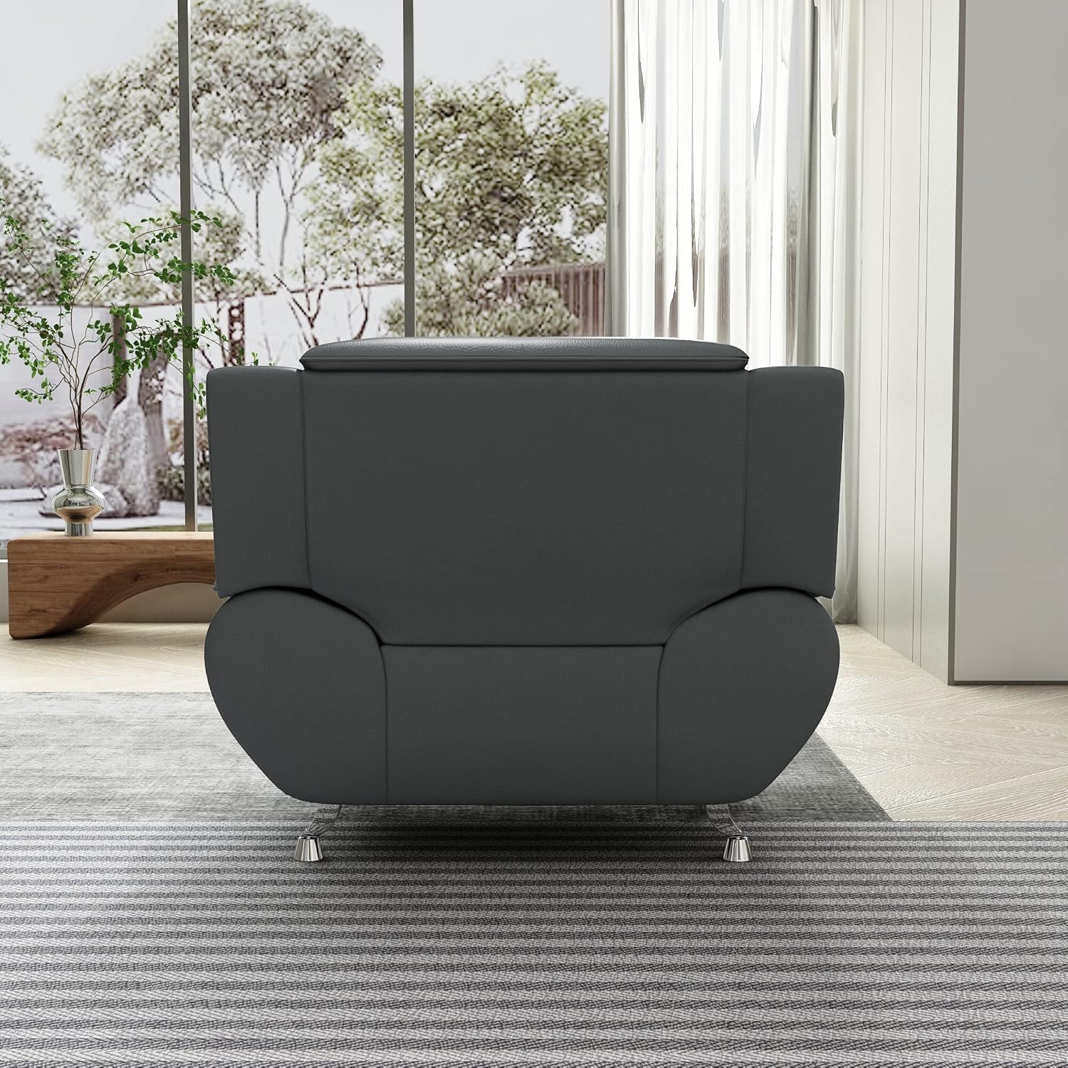 Container Furniture Direct Michael Modern Faux Leather Upholstered Stainless Steel Legs Living Room Sofa, Loveseat, Gray
