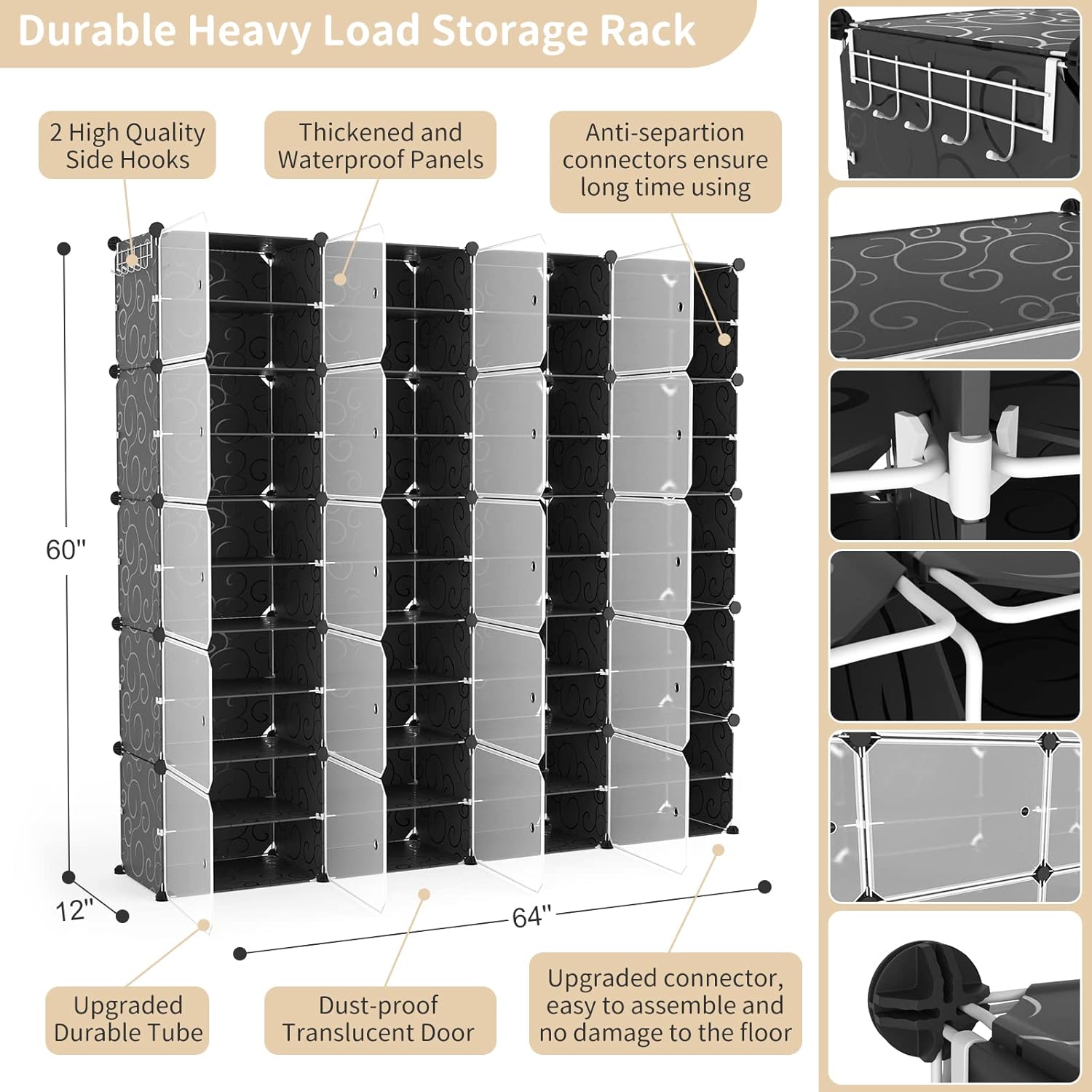 - 【CREATIVE DESIGN】Each cube supports up to 22 lbs. Each cube of the closet shoe rack storage organizer can hold up to 4 pairs of adult shoes, and the waterproof PP plastic panels are very durable to meet your long-term storage needs. The shoe cabinet with covers will be suitable for your cubby walk-in closet, entryway or garage, and the shoe shelf with layer height for boots regular heels, sneakers.