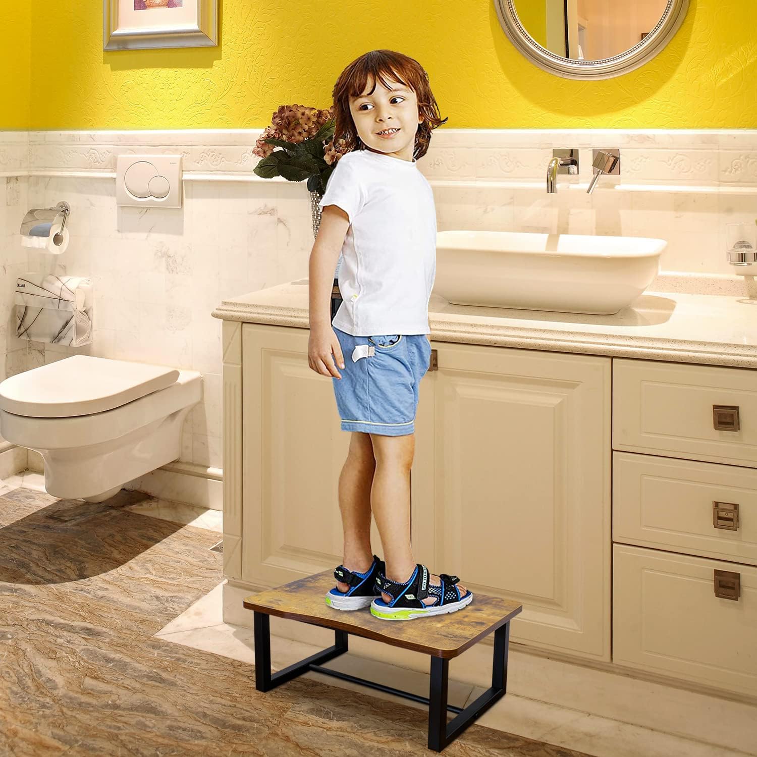 - 【Durable Construction】ITSST Wooden Step Stool is designed to support up to 500 pounds, ensuring stability and safety for adults in any home environment. The MDF frame combined with a sturdy metal base offers unparalleled strength for everyday use.