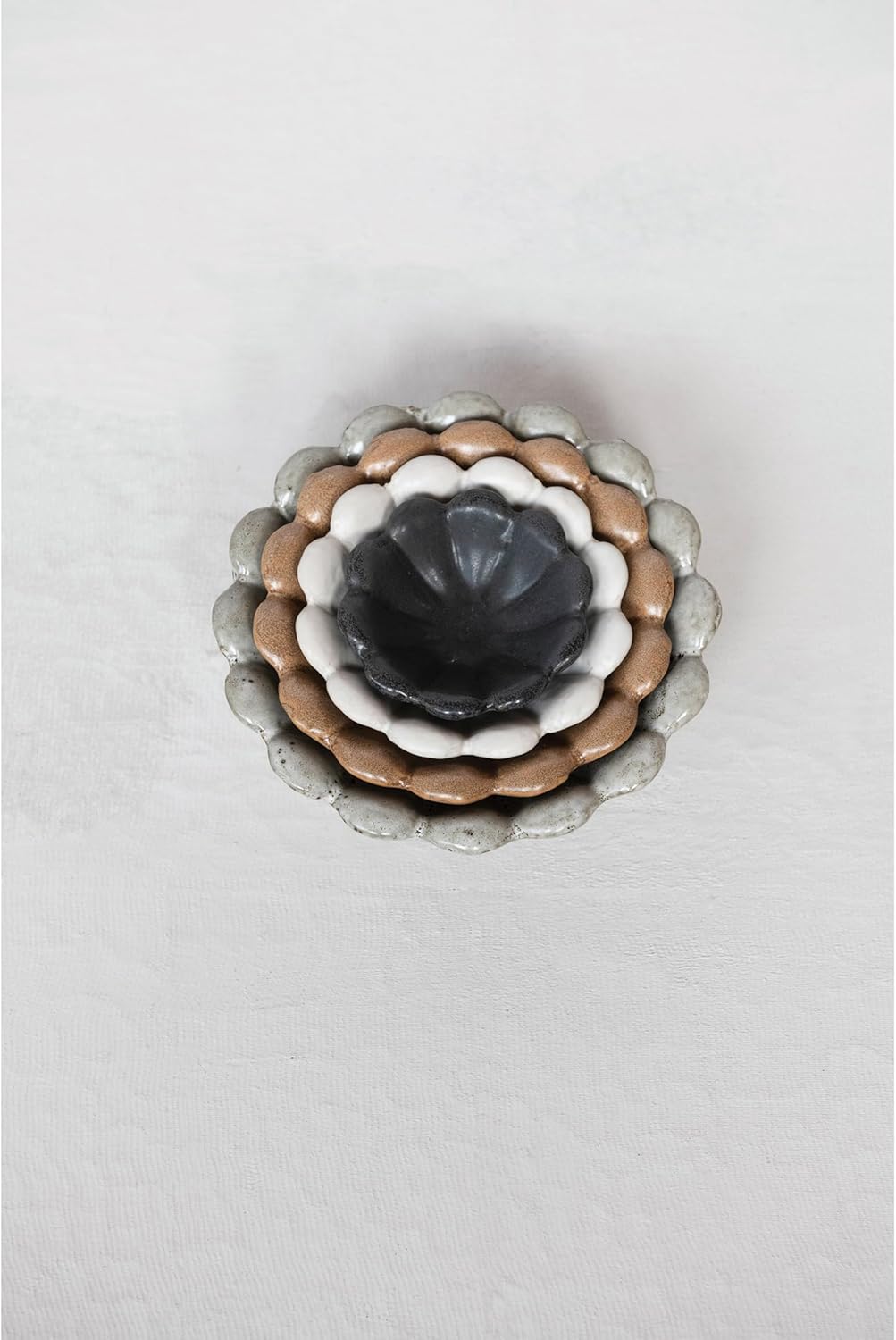 - Each bowl is a different neutral color.