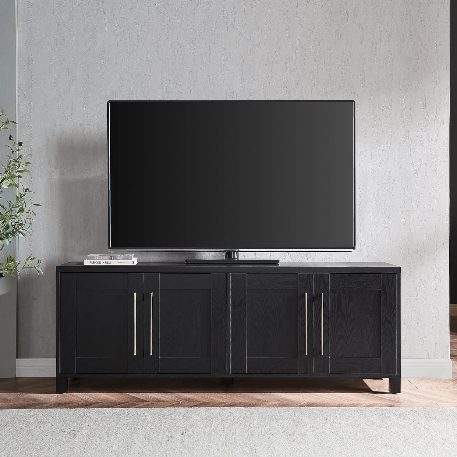 Henn&Hart Rectangular TV Stand for TV's up to 80" in Black Grain, TV Stands for the Living Room