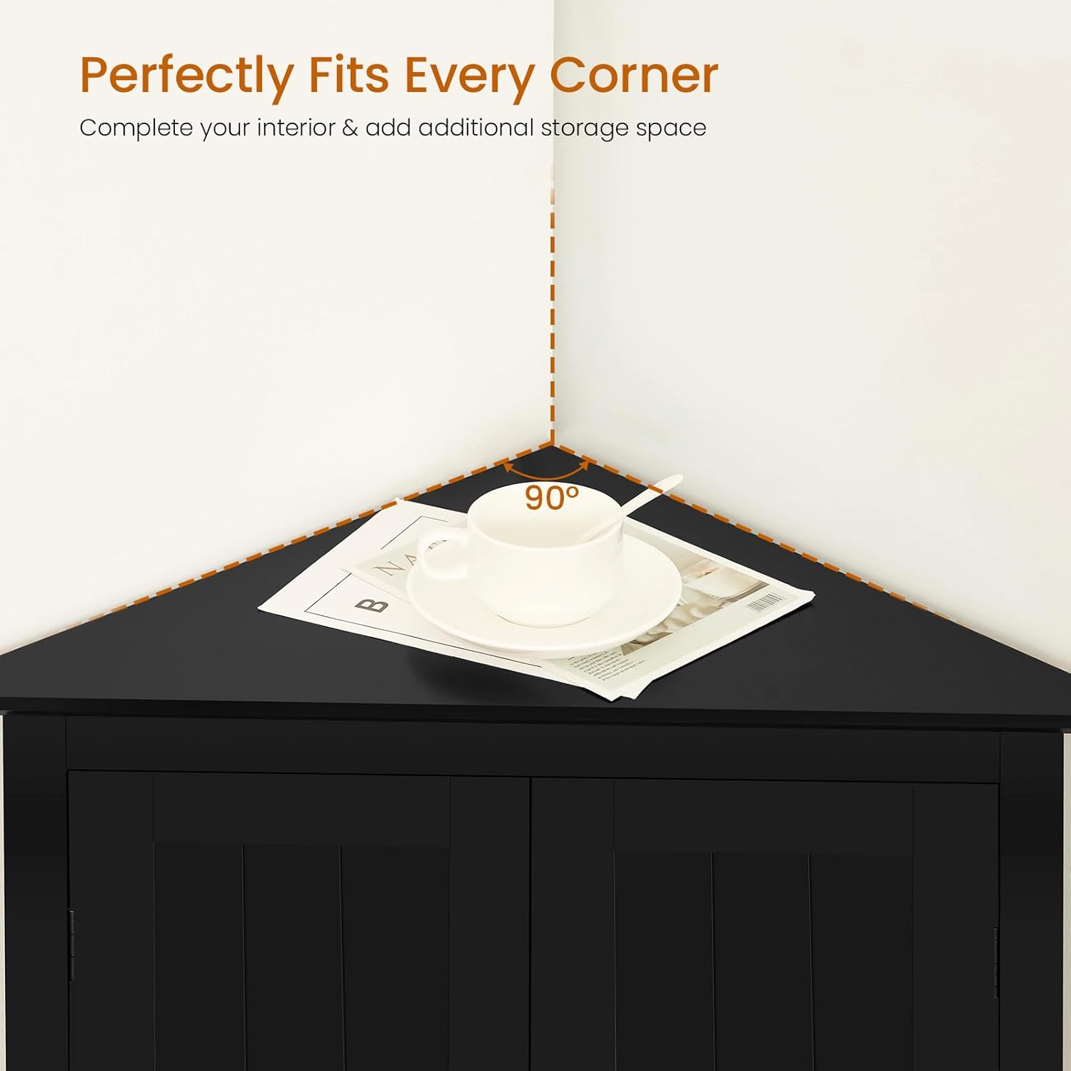 Iwell Corner Cabinet, Corner Bathroom Cabinet with 2 Doors & Adjustable Shelves, for Bathroom, Living Room, Kitchen, Black