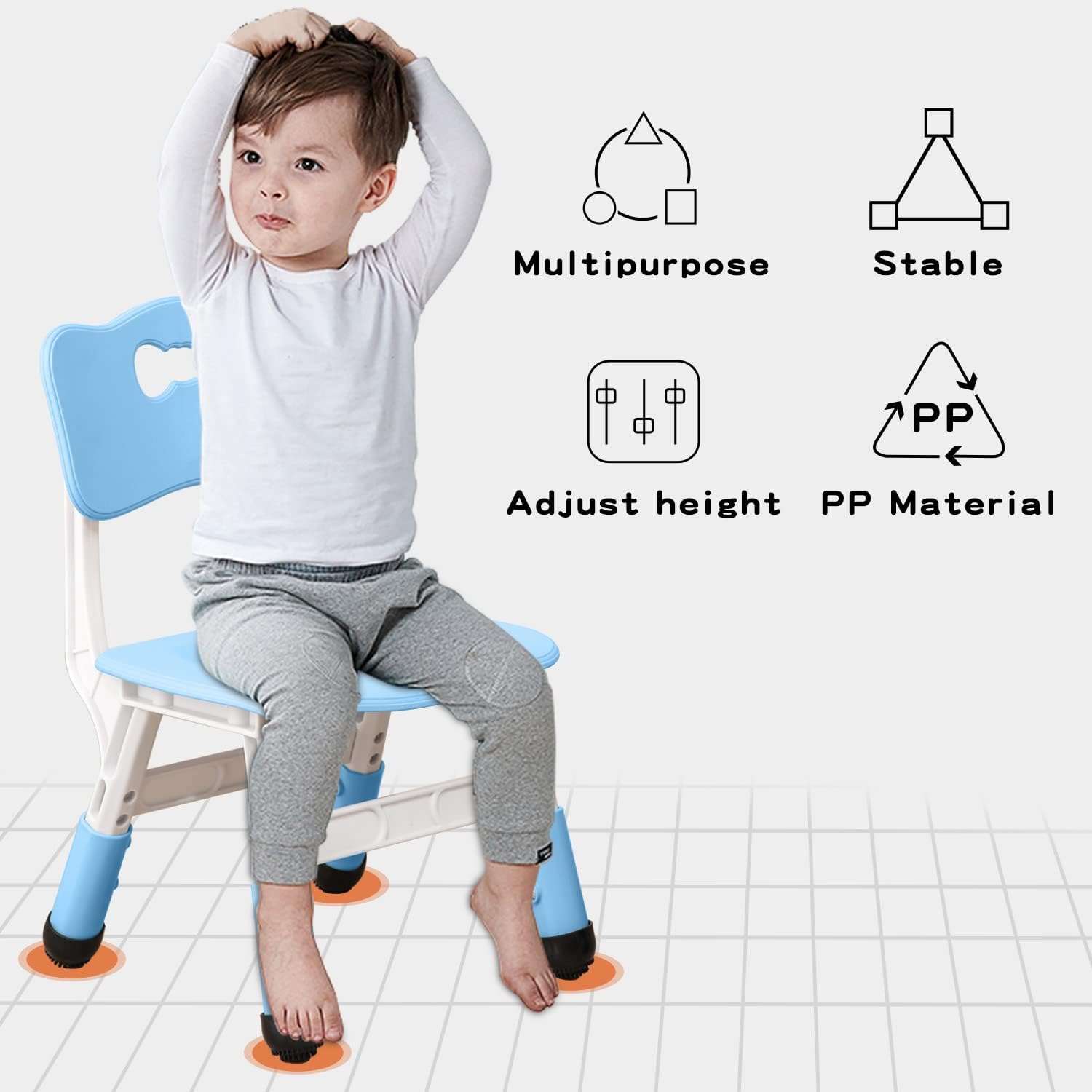 4 Piece Kids Chair Set 3 Levels Adjustable Stackable Kids Chairs Ideal for Playrooms, Schools, Daycares and Homes Washable and Easy to Clean Max Weight 220LB(Blue4-Piece Set)