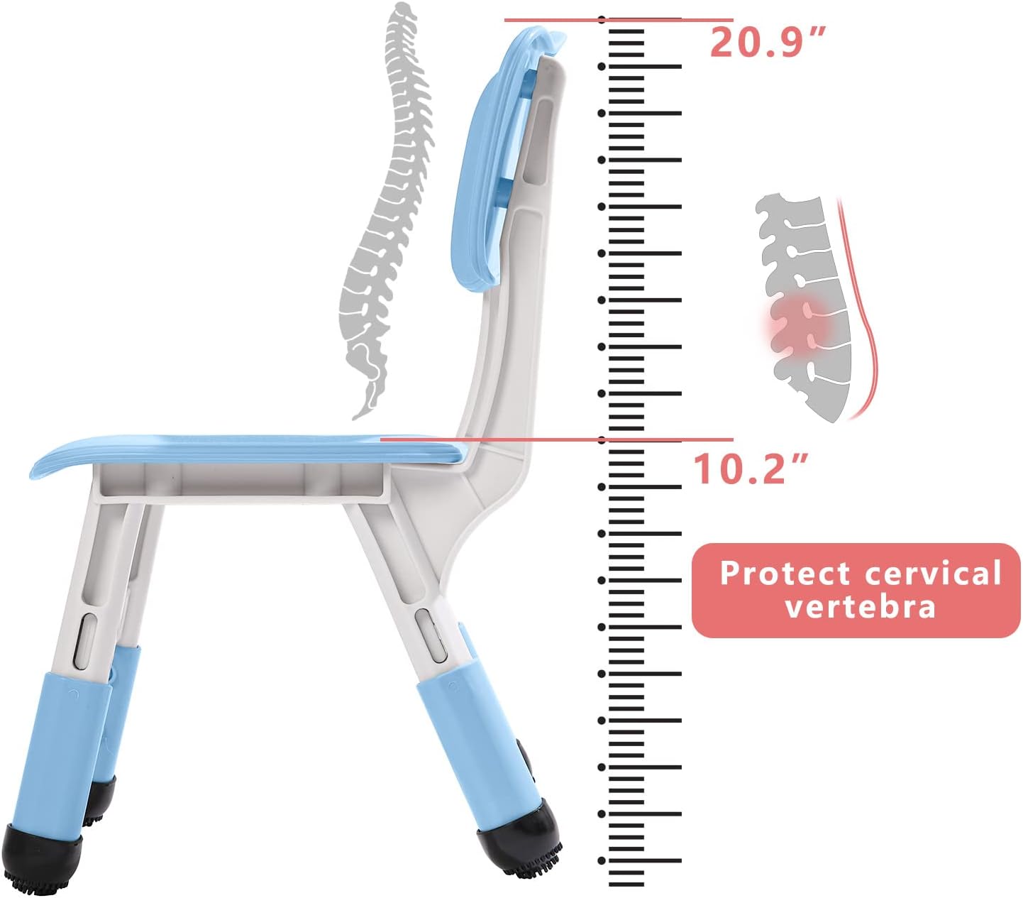 - 【SPECIALLY BUILT FOR KIDS】These School Chairs are easy to use and light weight for kids to pick up and put down. Chair height can be adjusted to 20.9in, 21.7in, 22.4in (level 3) to fit growing kids, with + screwdriver you can easily adjust the height to fit growing kids.