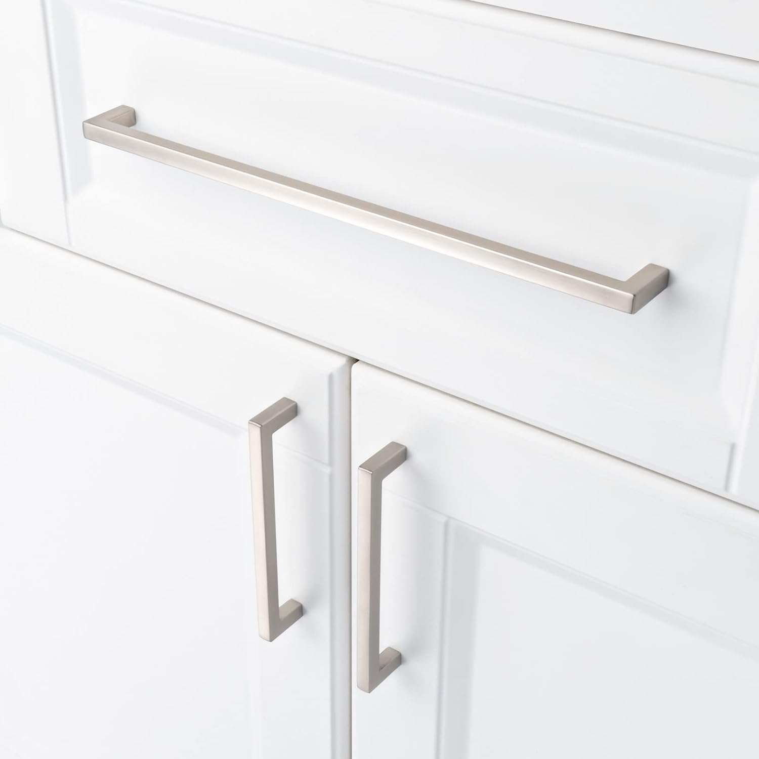 - Pack of 1 brushed nickel square bar cabinet pull handles, solid metal hardware.