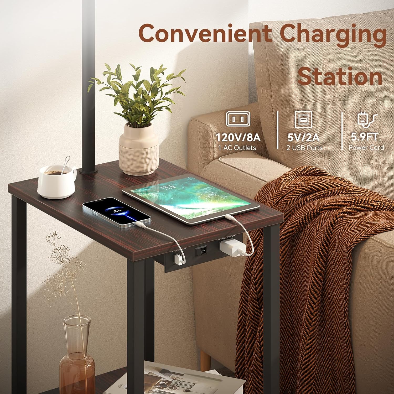 SUNMORY Floor Lamp with Table, End Table for Living Room with Lamp, Shelves Side Table with Charging Station(USB & AC Port), 3 Color Temperature LED Bulb, Modern Nightstand Lamp for Bedroom, Office