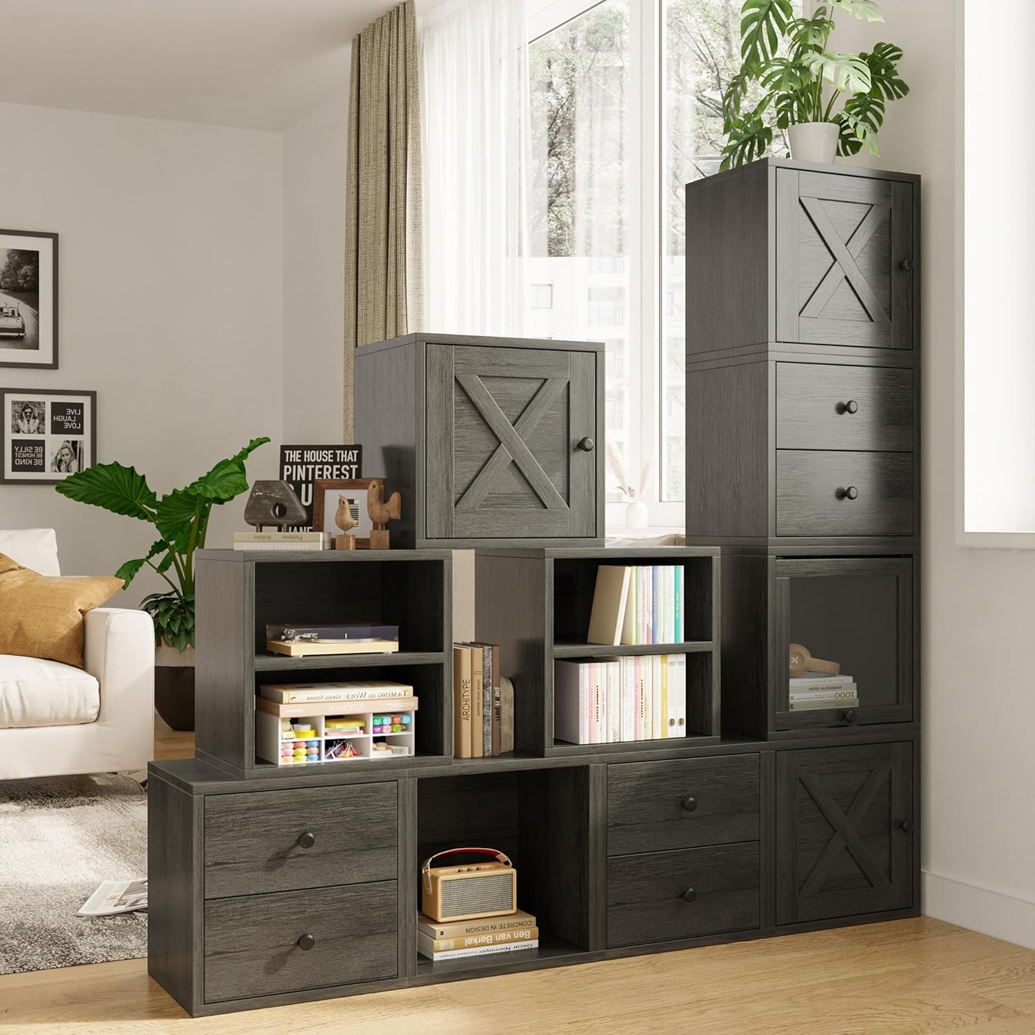 - [Free Stacking Cubes]: This narrow bookshelf, which you can freely place horizontally or vertically. The magic cubes can be freely combined to make your furniture layout more flexible