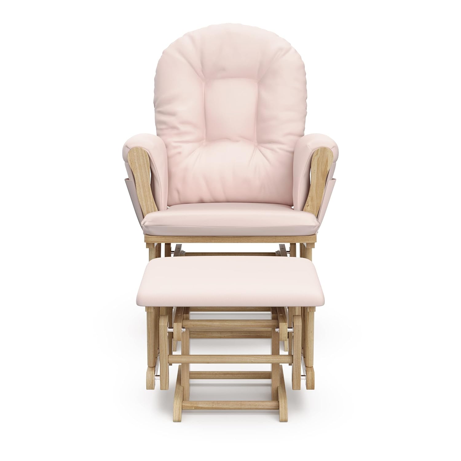 Storkcraft Premium Hoop Glider & Ottoman (Natural/Pink) — GREENGUARD Gold Certified Nursery Glider, Solid Wood Craftsmanship, Smooth-Gliding Nursery Chair and Ottoman, Award-Winning