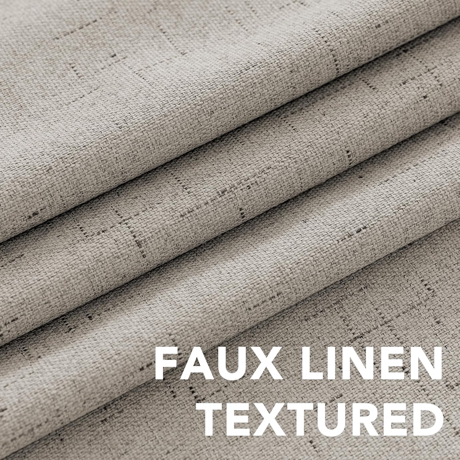 - INNOVATED MATERIAL: These casual linen draperies are crafted from rich linen like fabric (100% polyester), added with 100% blackout lining, draped and soft, block the wind and reduce the noise. Lab test shows these awesome curtain panels are environmental and vinyl free
