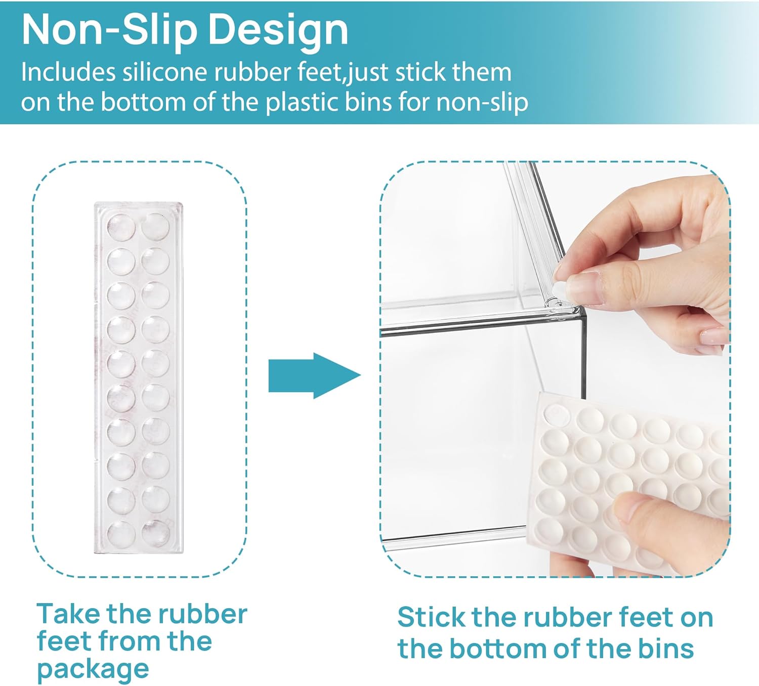 - [Built-in Handle and Non-Slip] The storage containers are designed with pull-out handles, it is convenient for you to store and take out items.Extra silicone pads are included, just stick them on the bottom of the outer box for non-slip,it will stay in place when the drawer slides