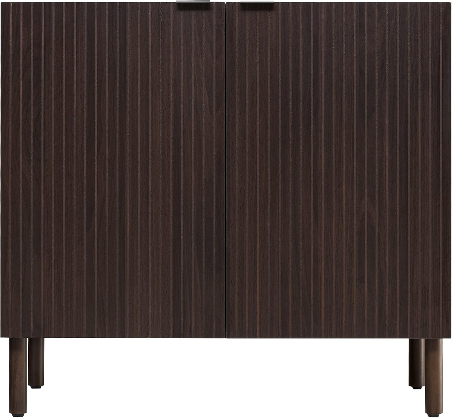 Sango Merk 2-Door Cabinet, Modern Walnut Storage Cabinet with Vertical Groove Doors, Adjustable Shelf, Cylindrical Wood Legs, Discreet Metal Finger Pulls, Stylish Furniture for Living or Dining Room