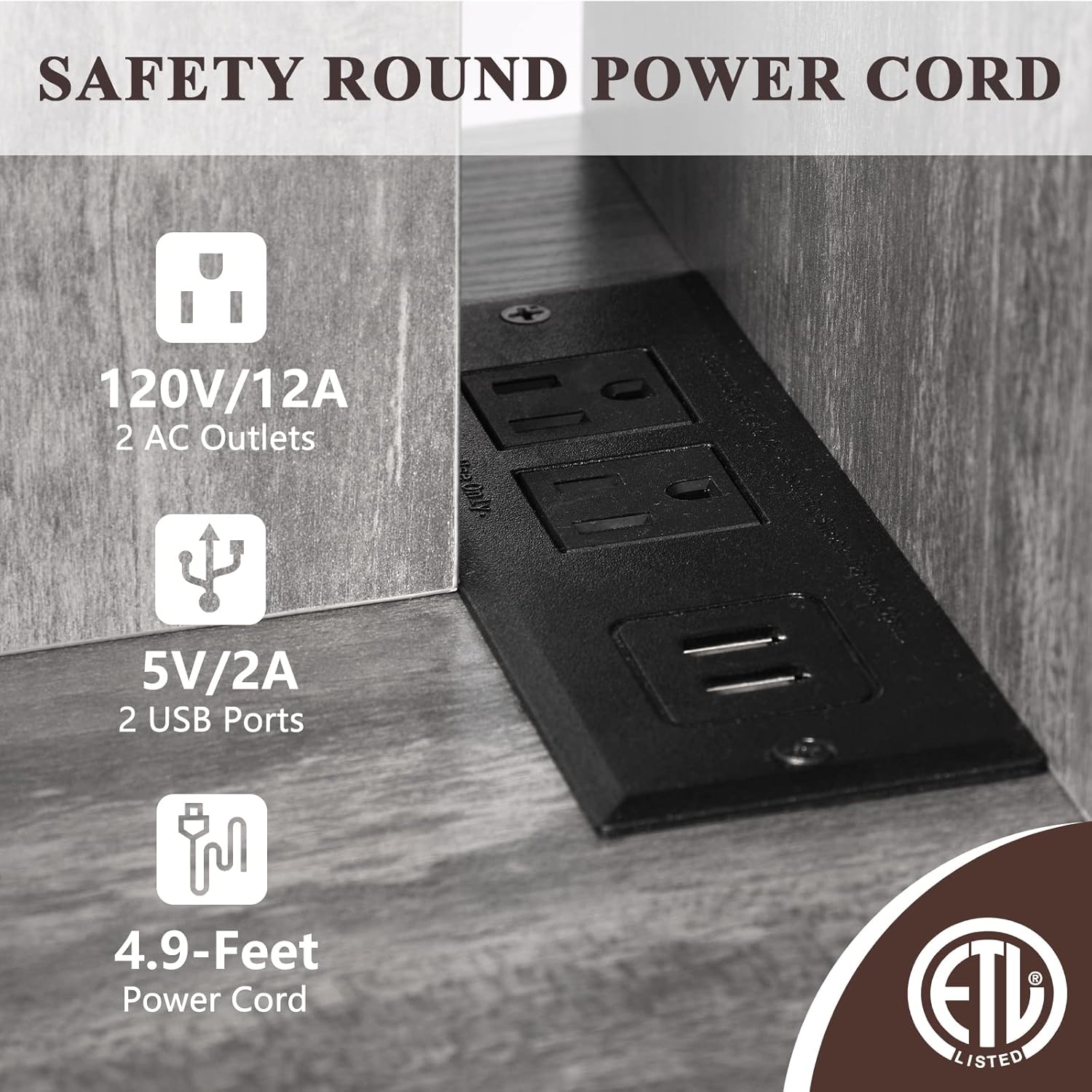 - SIDE TABLE WITH CHARGING STATION: The end table with USB ports and outlets is great for you to keep the phone, tablet, laptop within arm's reach when charging. You don't have to worry about any spilled liquids getting into the outlets on the second shelf. Another improvement is that our 4.9 feet round power cord is heavier duty than the flat cord