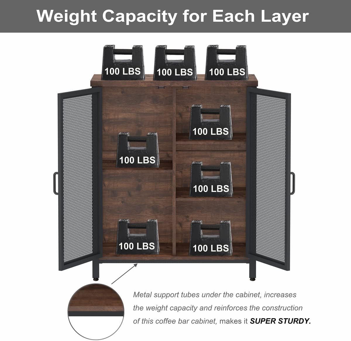 - High Weight Capacity Rustic Cabinet: The bar cabinet station top can bear 300 lbs home supplies and each shelf hold up to 100 lbs. With its ample storage space and strong weight capacity, you can display everything you need close at hand.