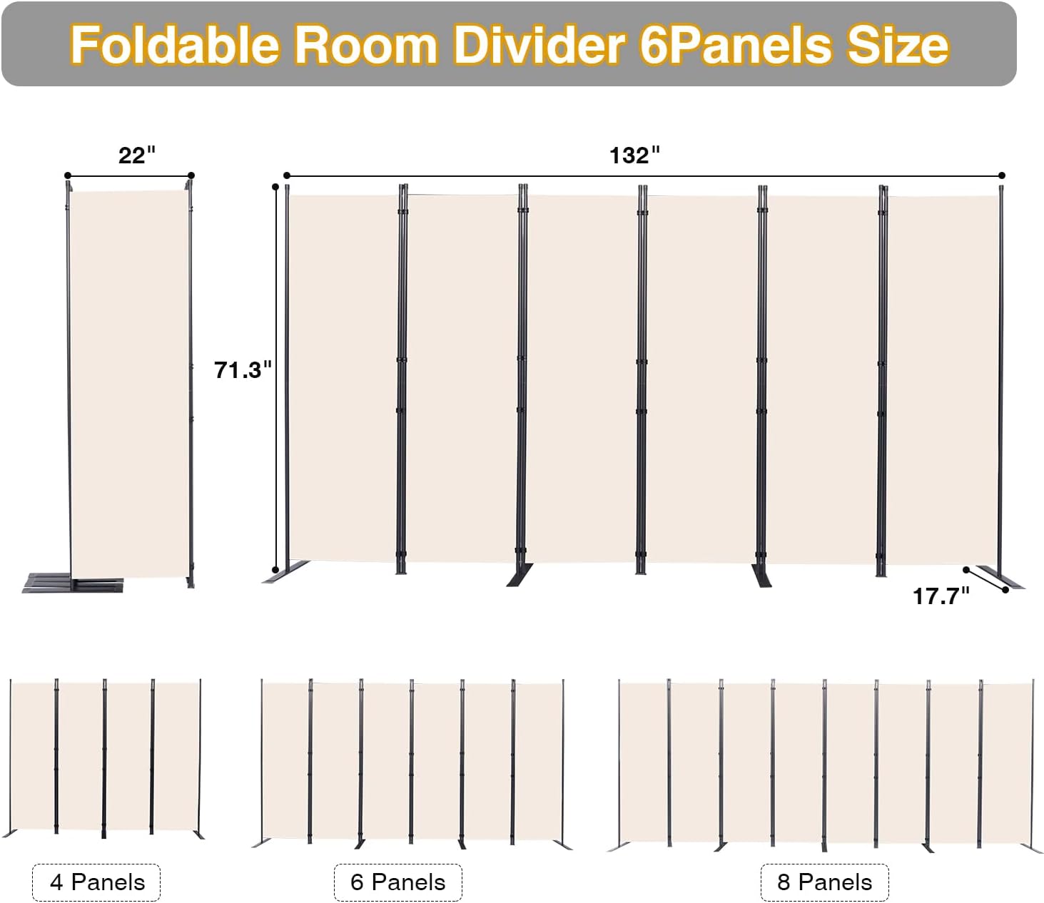 Room Divider, 6 Panel Folding Privacy Screens with Wider Support Feet, 6 Ft Portable Room Partition for Room Separator, 132" W X 71" H, Beige